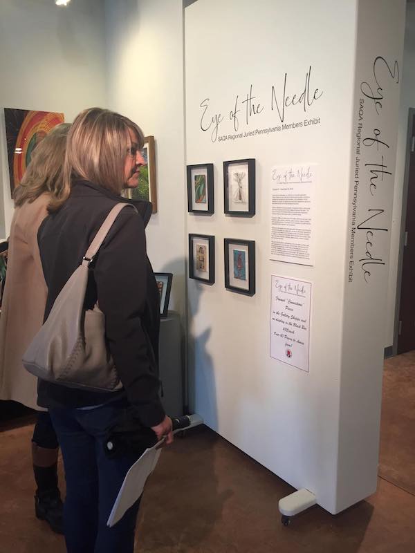 The SAQA Pennsylvania Region debuted its regional show Eye of the Needle at the Bottle Works: Arts on Third Avenue in Jonestown, PA in October 2018.