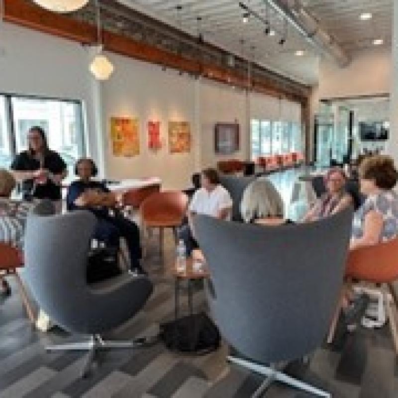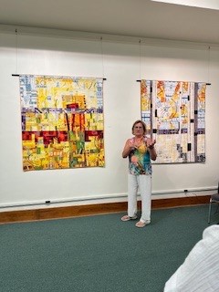 During a luncheon at the Lyric Event Center, Katie provided a lecture presentation that was intimate, engaging, and memorable. It was a delight to see Katie and her family and friends celebrate together with our SAQA and quilting community.