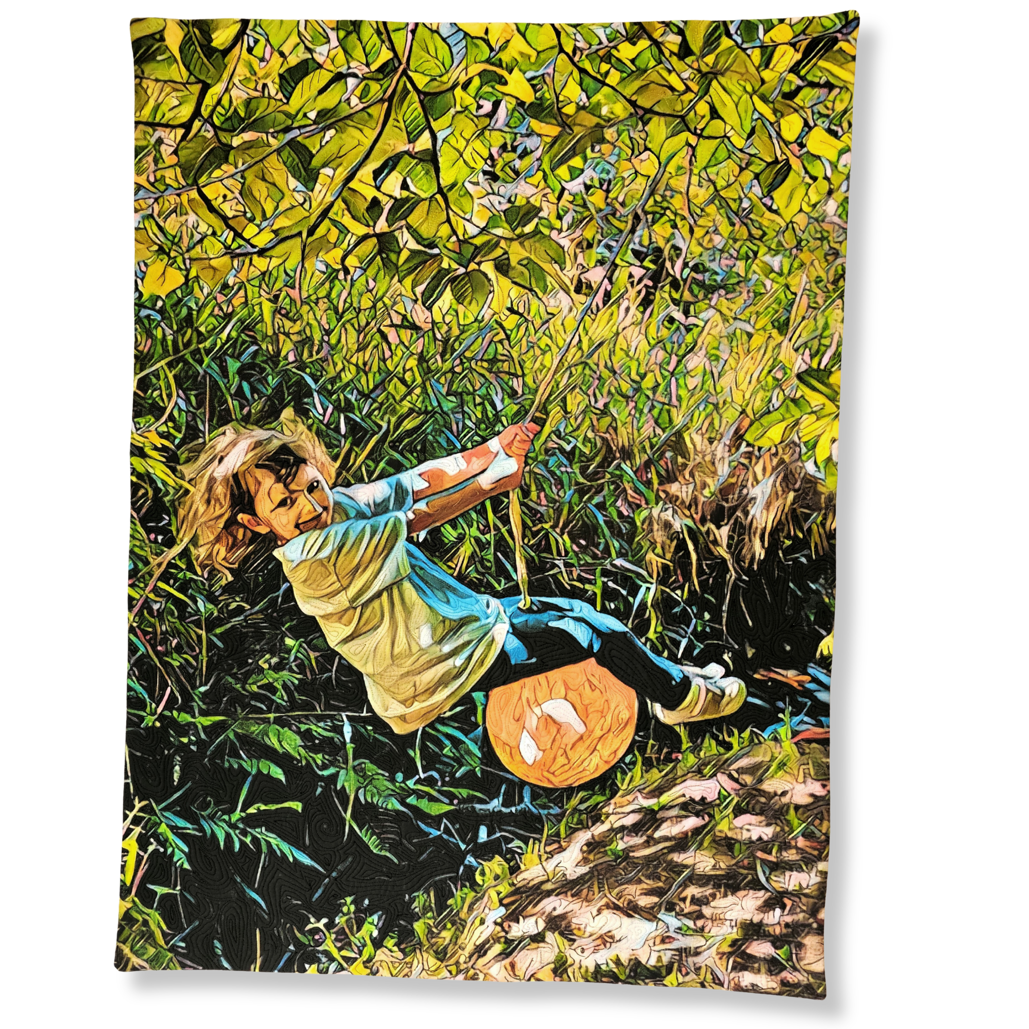 Have you ever taken a ride on a rope swing over a creek? My granddaughter has been taking off without any help since she was three. I look in those eyes and see the independence and strength of her great-grandmother, the joy and freedom of her aunts, and the spirit of her mother. 3-2-1 Blast Off is a whole cloth quilt from a photo I took in July of 2023 as my granddaughter played in the creek behind my house.