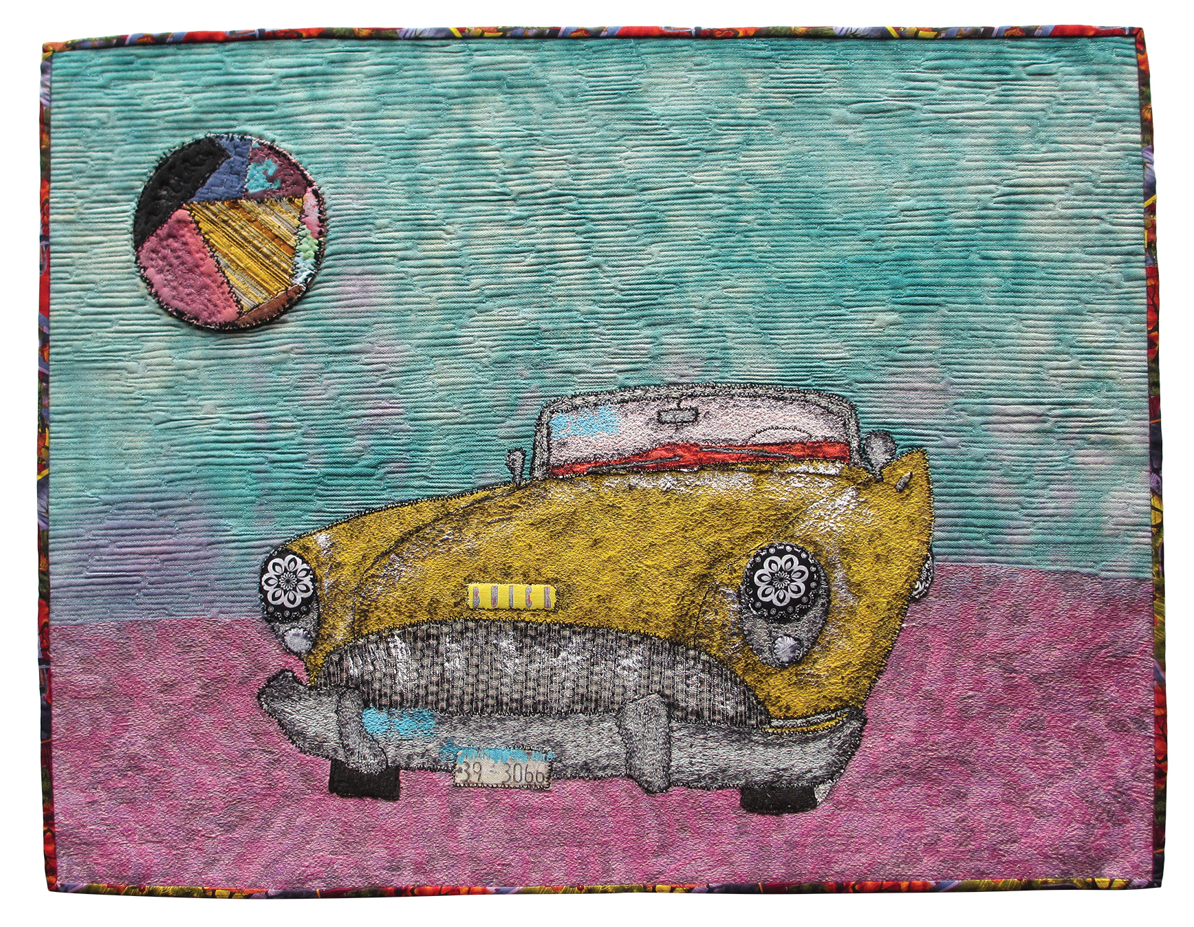 Raw edge work using layers of a variety of fabrics, heavily stitched using cotton threads.