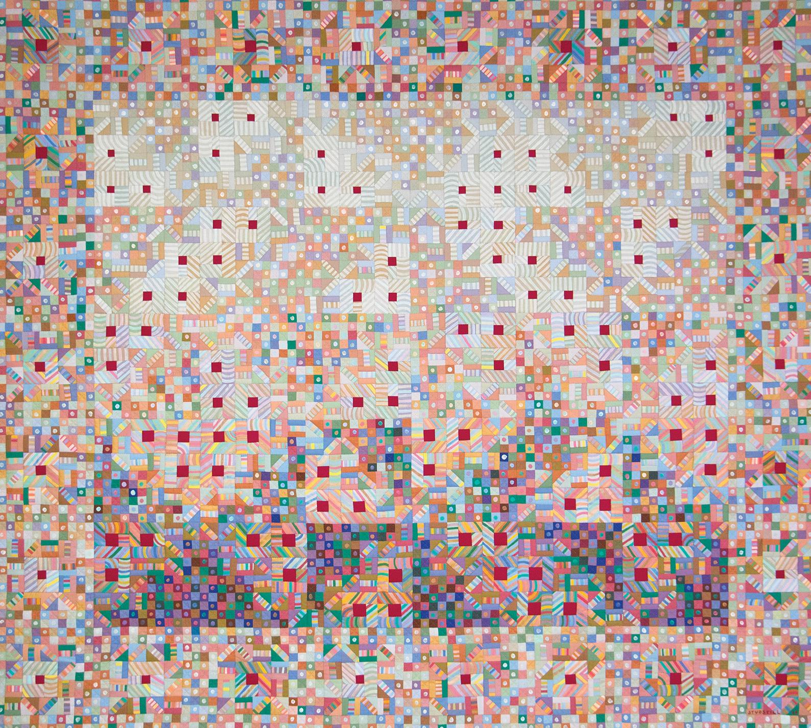 Browse the Collection 68 Pamela Studstill Quest Size 64 in x 72 in (163 cm x 183 cm) Year 1980 Gallery National Quilt Museum (Collection Highlights) Buy Now >> (Courtesy of the National Quilt Museum)