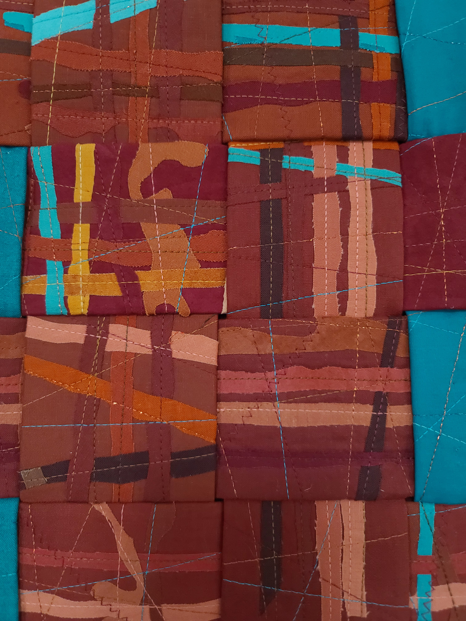 Raw-edge appliquéd, machine quilted