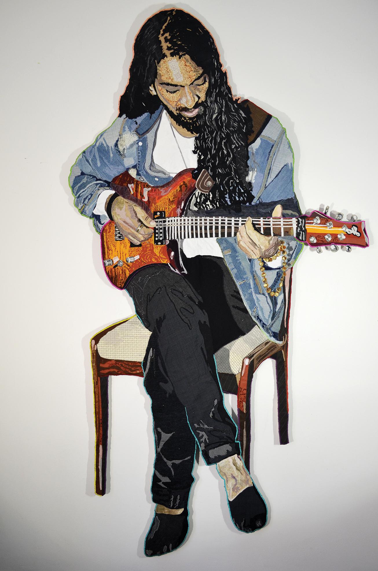 90%+ various reclaimed textiles, industrial felt, thread, velcro