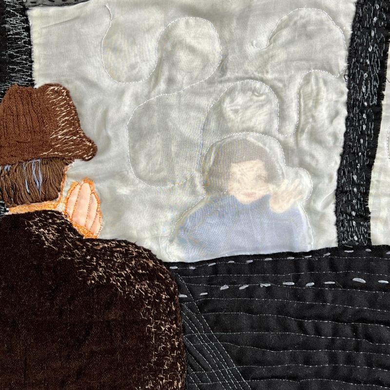 Drawn, painted, embroidered, free motion stitched, thread painted