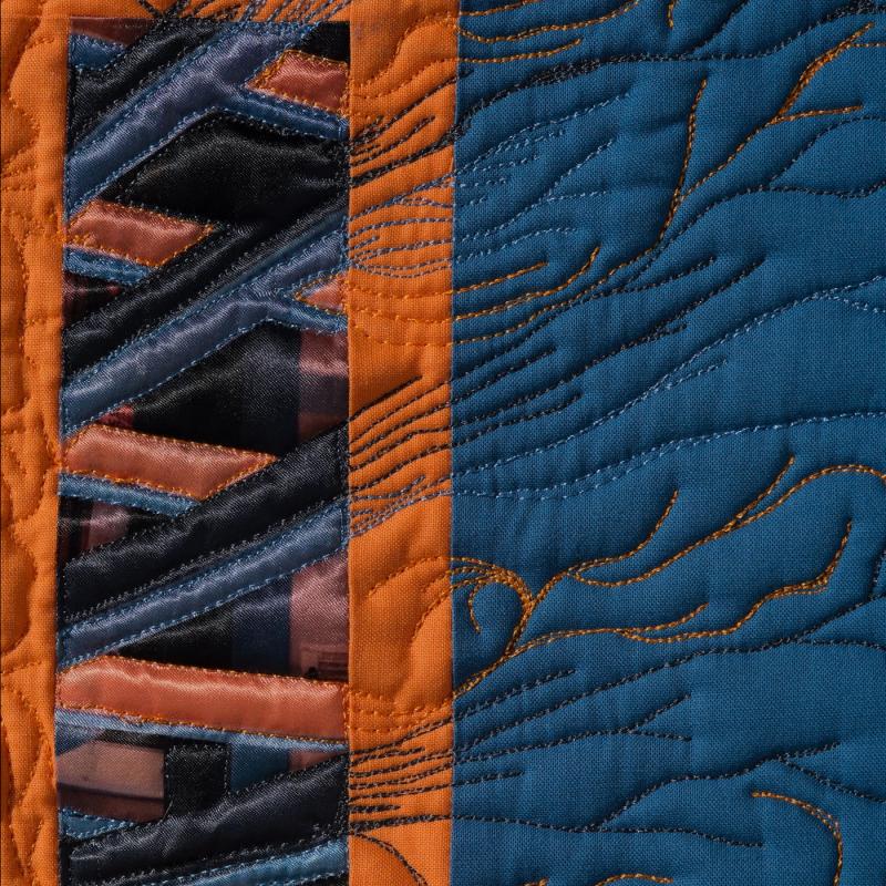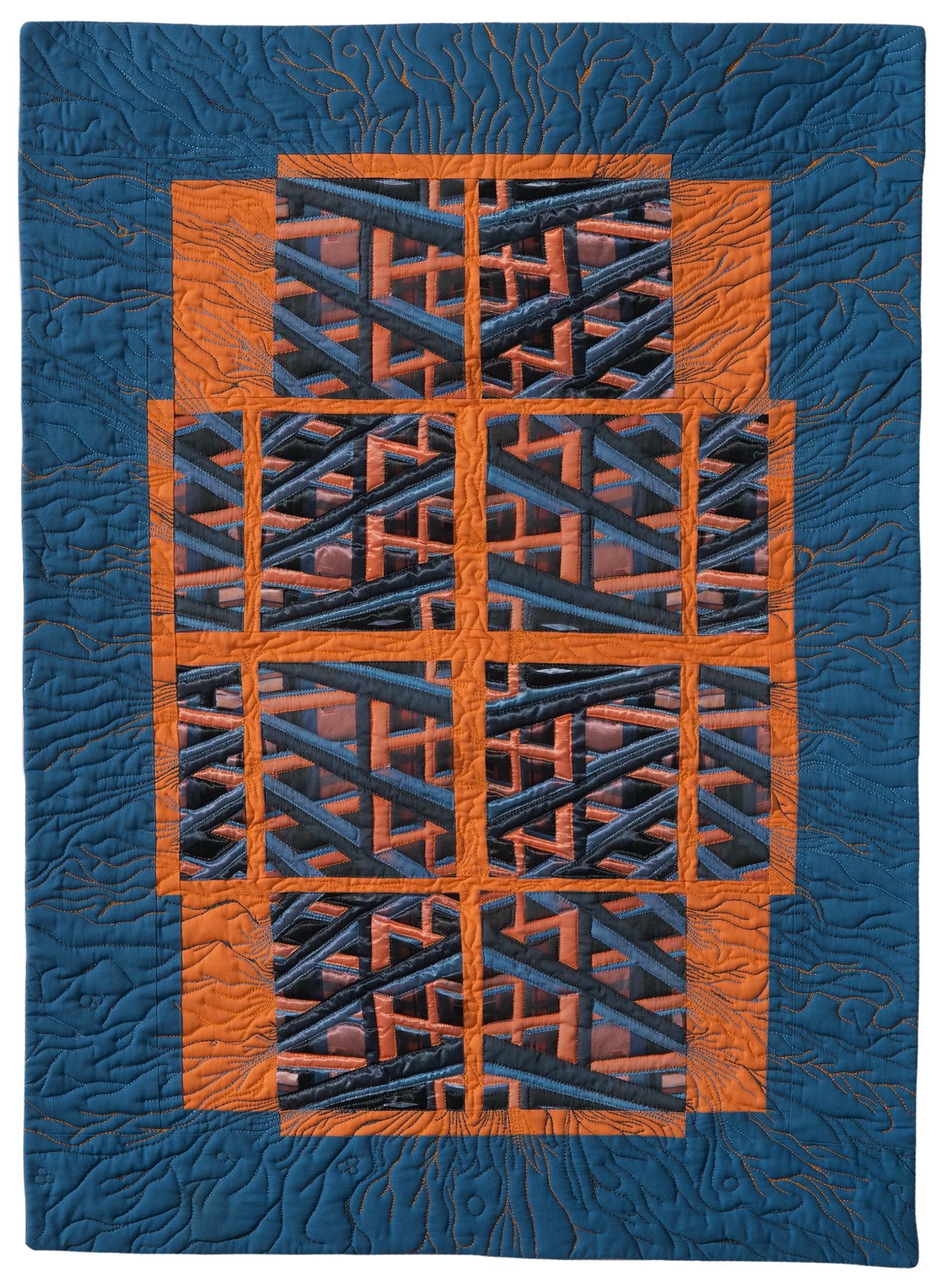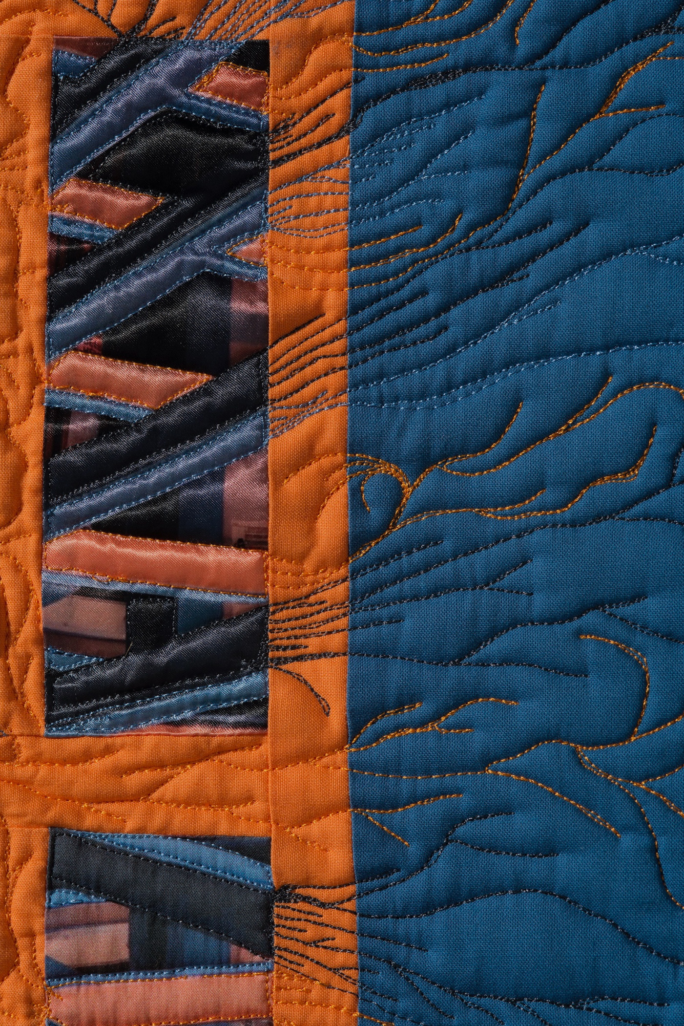 Commercially printed cotton/poly of original photograph by artist Ava Freyer used with permission, poly thread, wool batting.