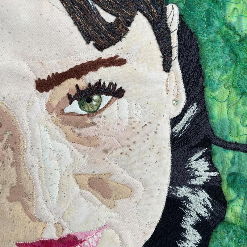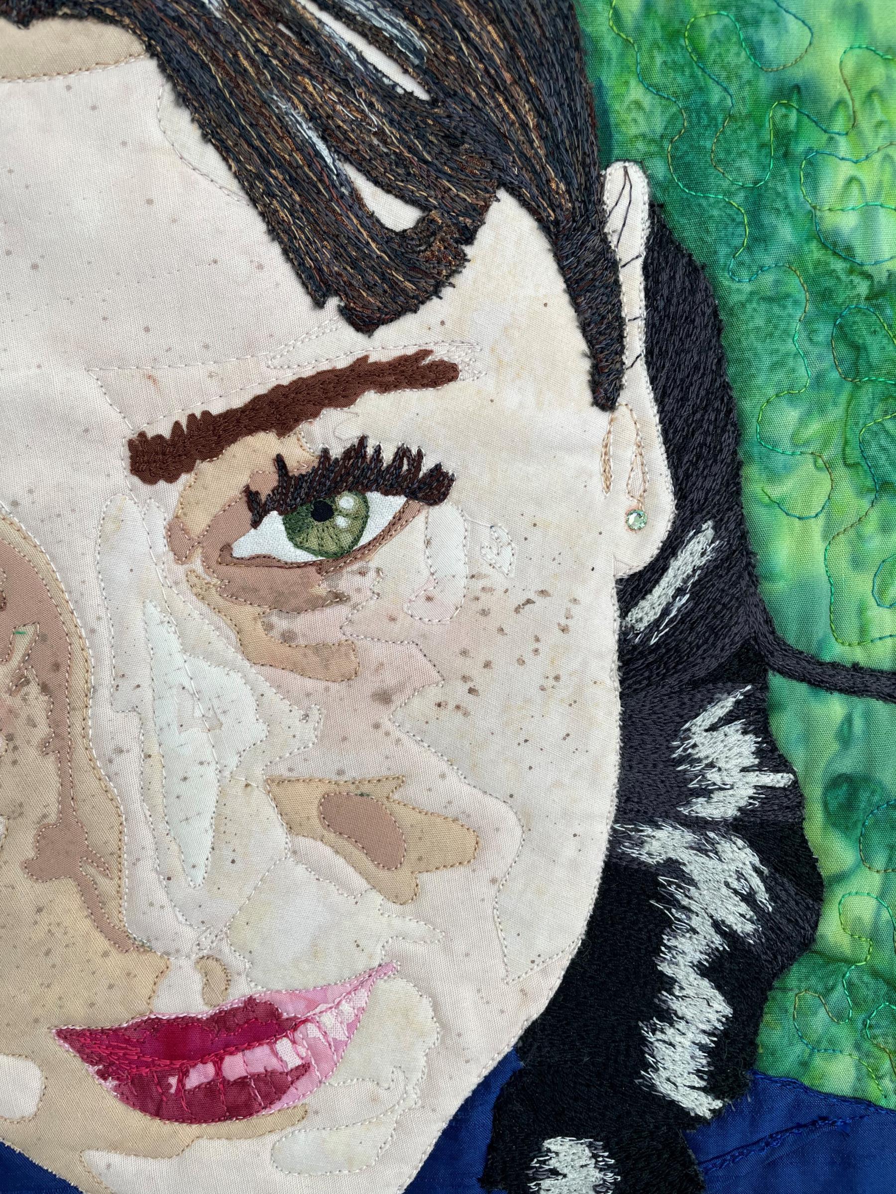 In my journey to train myself as an artist and my desire to do portrait quilts, I decided I should check off a self-portrait, in some ways so hard because one knows exactly how one’s own face should look and also very freeing because it is after all, only my own face.