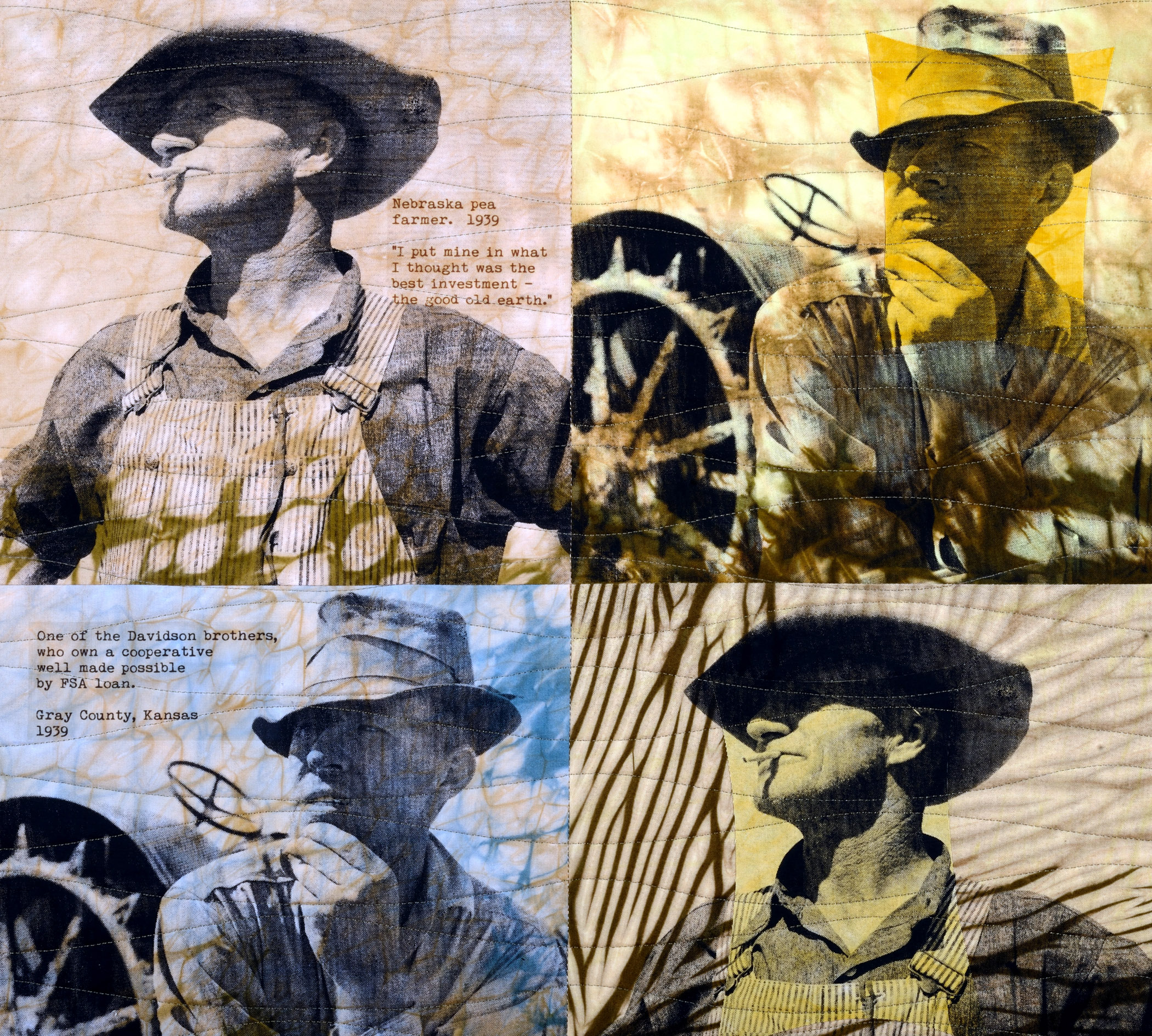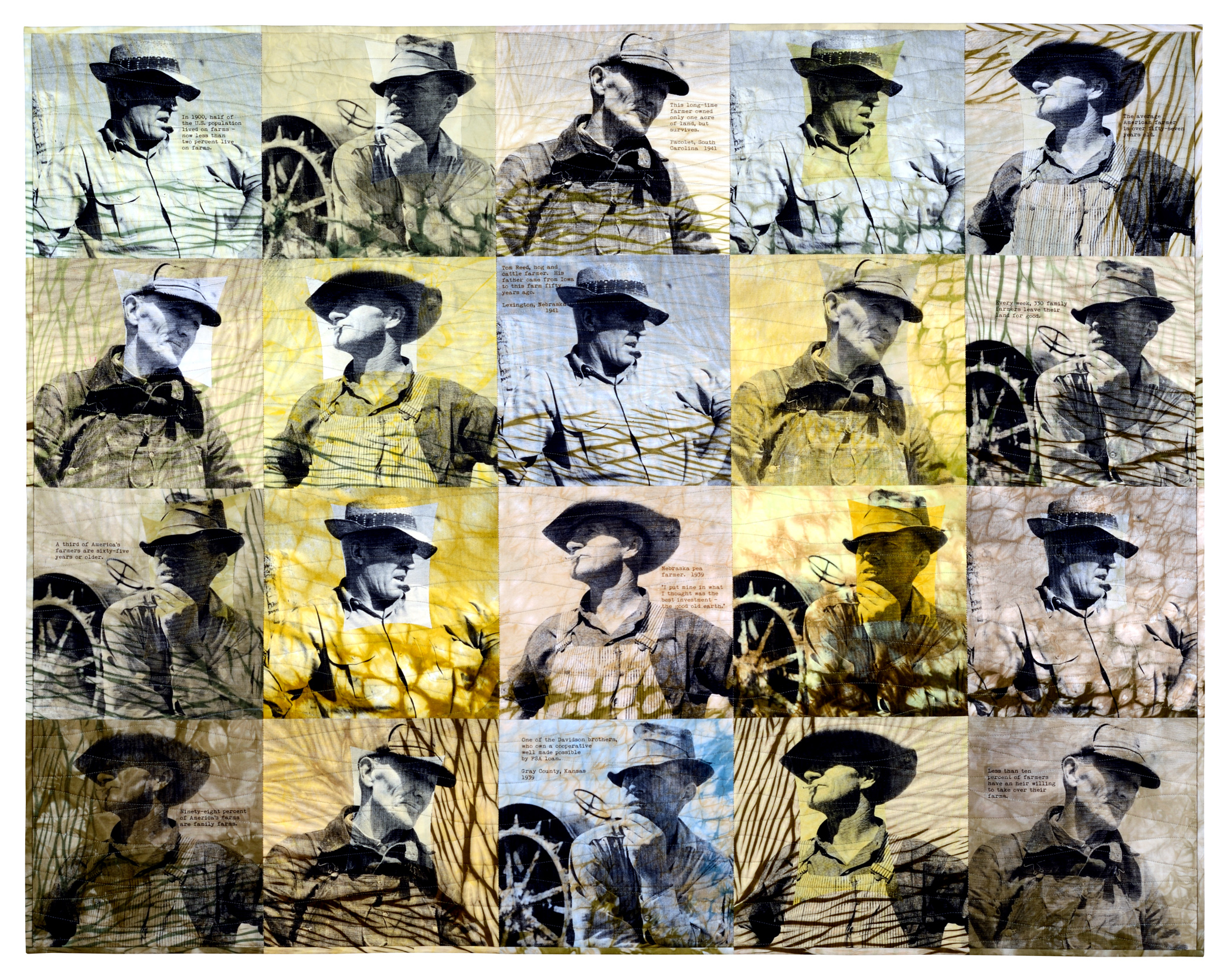 Cotton, dyes, photographs, silkscreen materials, textile inks, image transfer materials