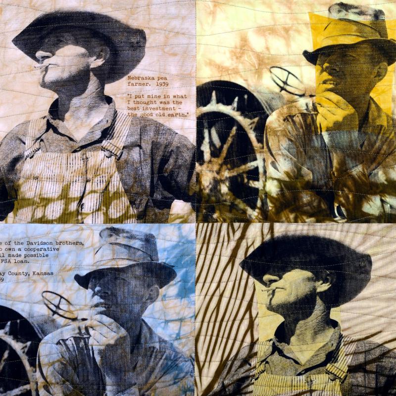 This piece is a tribute to the strength and tenacity of independent farmers, both historically and today, as they struggle to survive. Based on 1930s images from the Dust Bowl era (courtesy Library of Congress), their patience, determination, and perseverance is my inspiration. They quite literally bring the food to the table, and in doing so, create true cause for celebration.