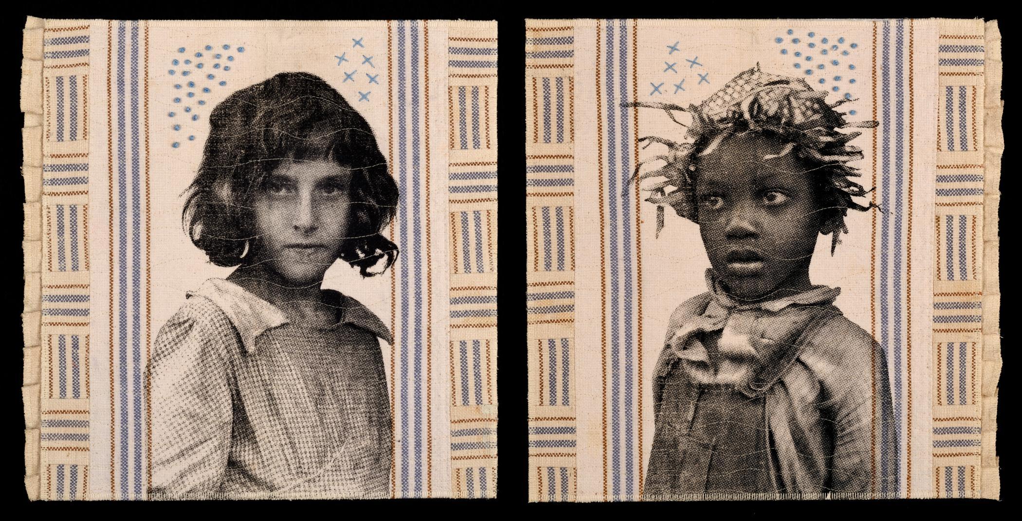 This work is inspired by photographs taken for the U.S. Farm Security Administration during the 1930’s Dust Bowl Era, and are my tribute to the independent family farm. The family farm is an essential part of our diverse American fabric, representing strength, tenacity, and perseverance. The faces of these two young girls show grit, determination, and hope. Printing on heavy feed sacks was challenging, as was the sewing and piecing. The hand stitching represents the skills they may have been learning at the time, adding their own personal touch to the piece.