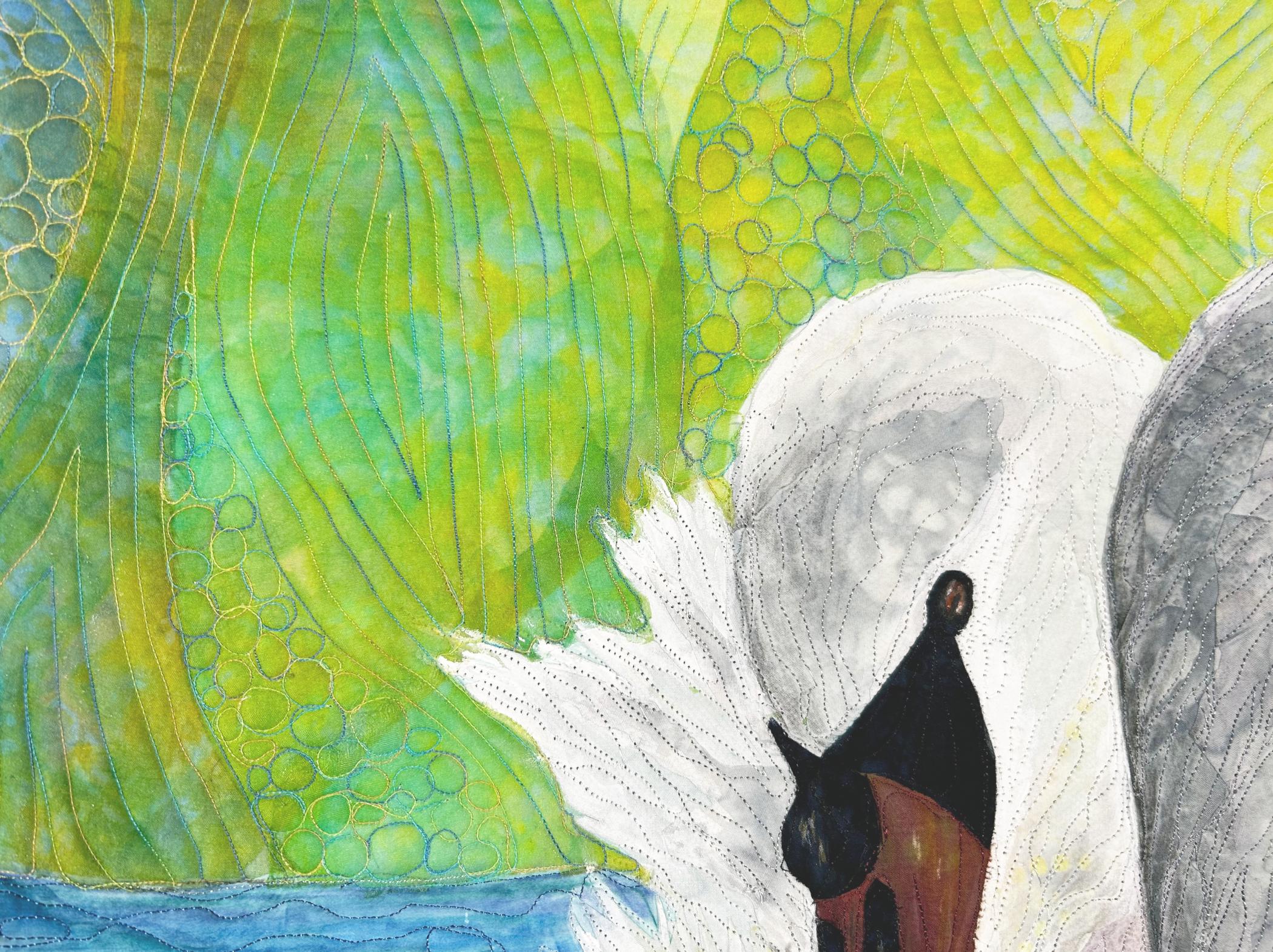 Alcohol ink painted, raw edge appliquéd, overlayed