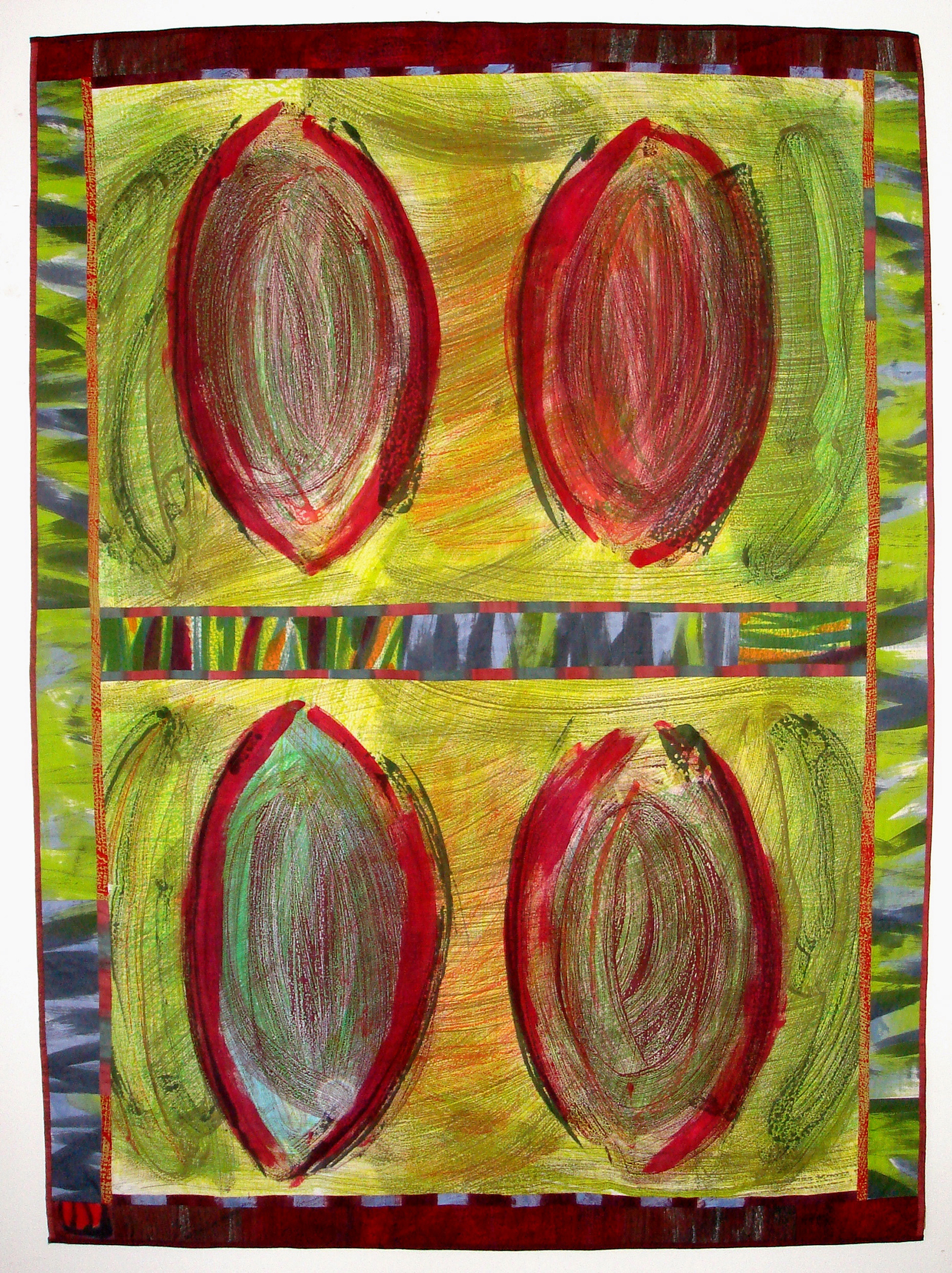 Handpainting, monoprinting, machine quilting, machine piecing