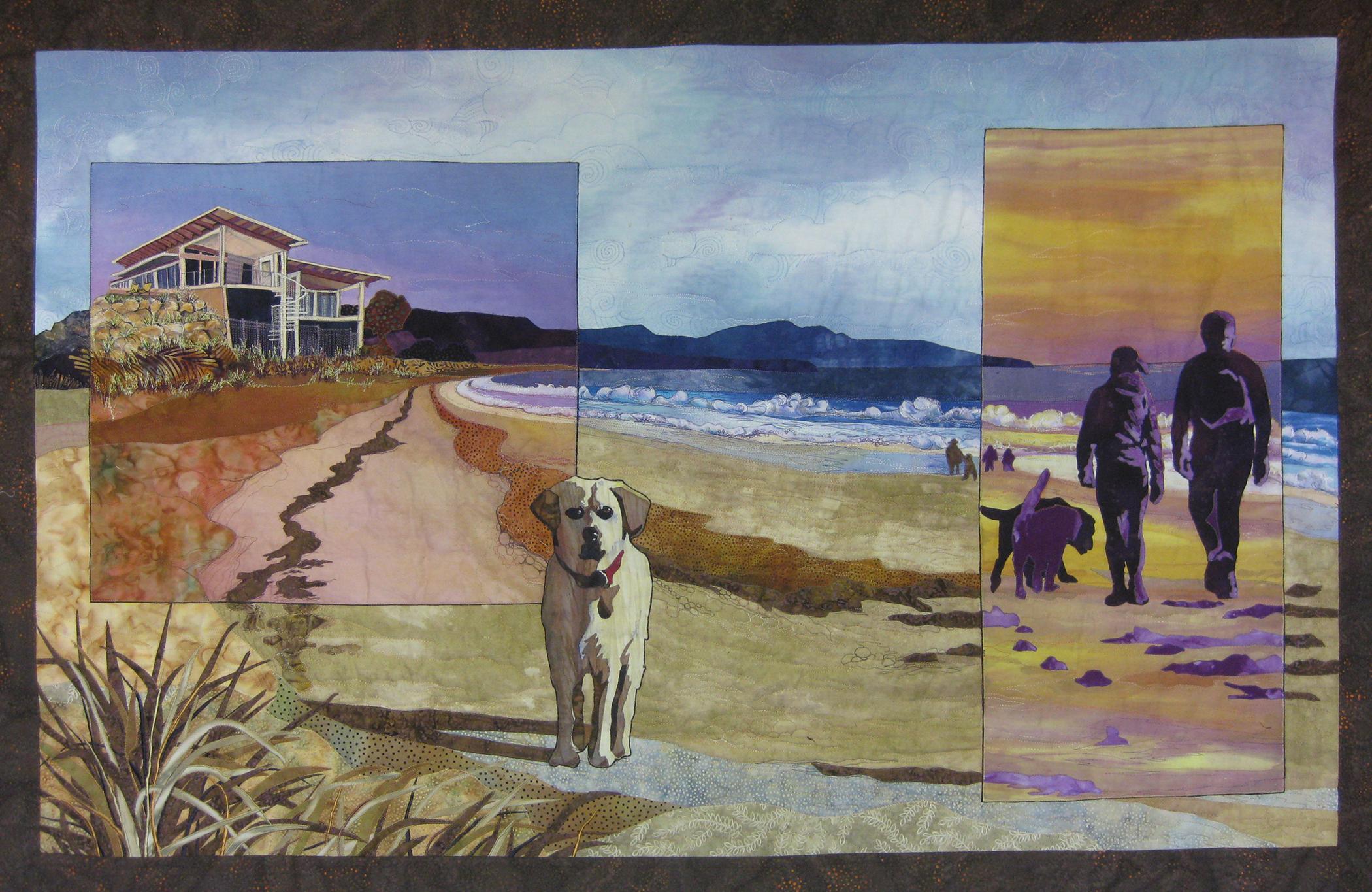 Designed by the artist and based on photographs taken by Henry Smith. Culburra, on the southern NSW coast, is where Judy and Johnny spend many memorable holidays with family and friends at their beautiful beach house. Contrasting sunset views capture the relaxed lifestyle and regular beach walks with dogs Georgie and Bill. 'Beach House Culburra' was created as a token of Julie's appreciation for the generosity, kindness and support given to Henry whilst he lived with his cousins and began his career in Sydney.
