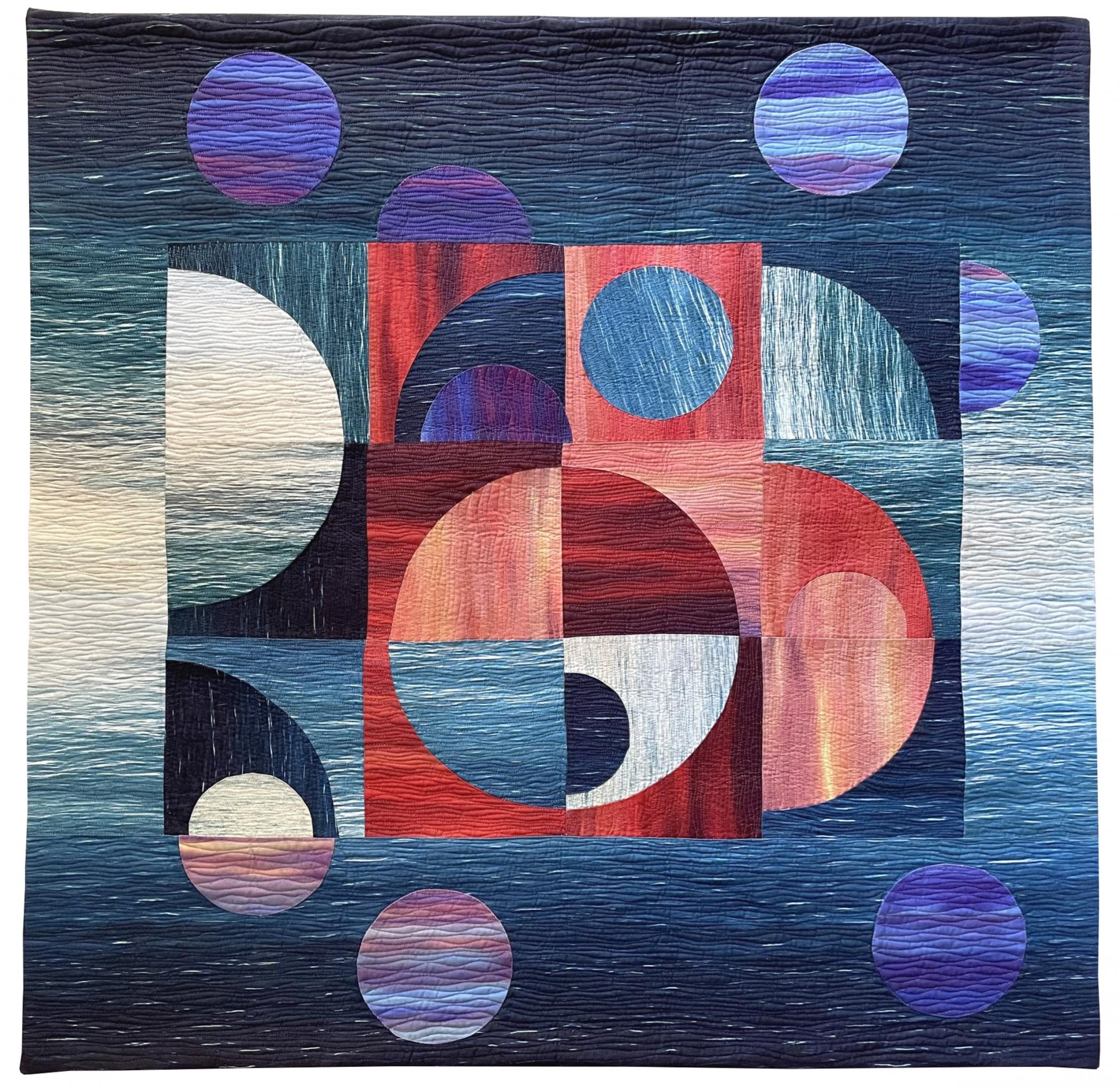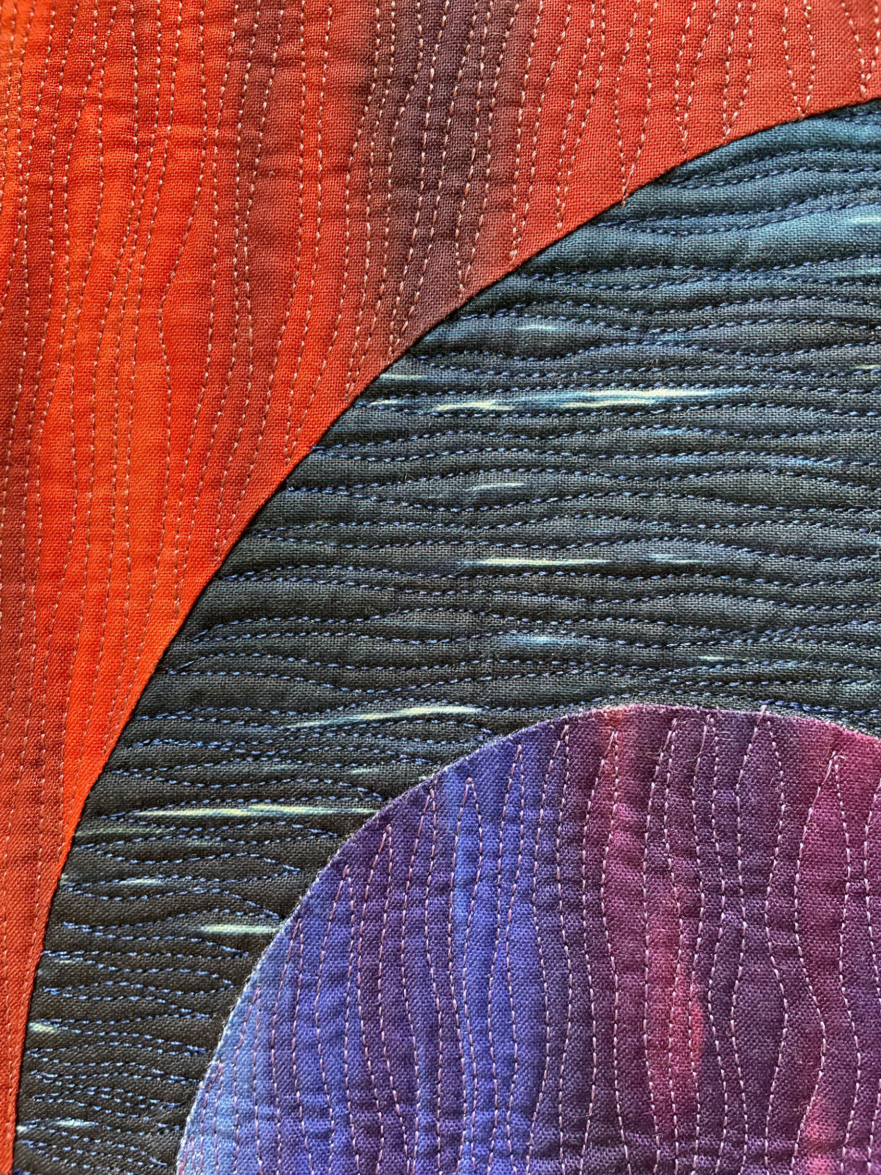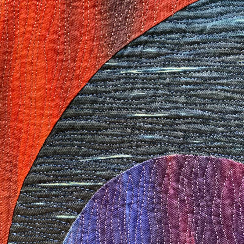 In the process of designing this quilt, I was inspired by the perceived quiet of a universe that’s actually in constant movement and change. It’s a beautiful and chaotic universe, hot and cold, with explosions and implosions, slow and fast at the same time. The events that trigger changes happen in places located thousands of light-years away, and small changes cause big consequences; the beautiful and exciting order of chaos.