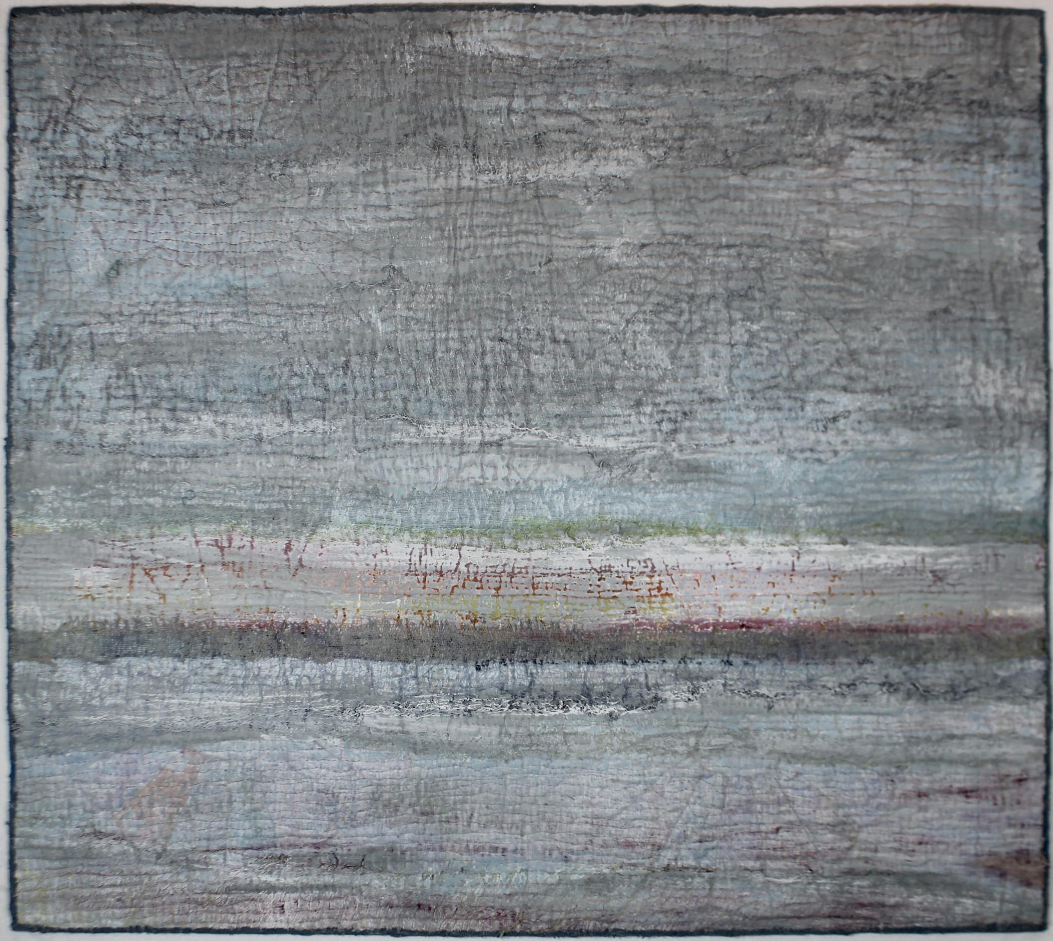 'Beneath the Surface' uses an old, well-worn bed quilt as its base. The structure and colours of it can be seen through the subsequent layers, adding an extra dimension below the surface.
