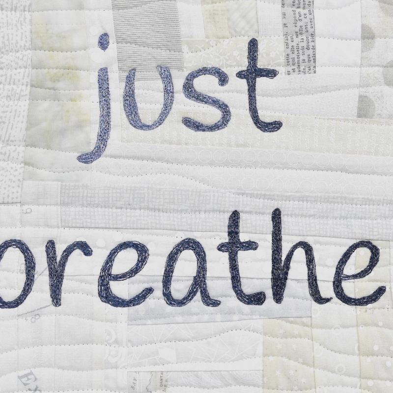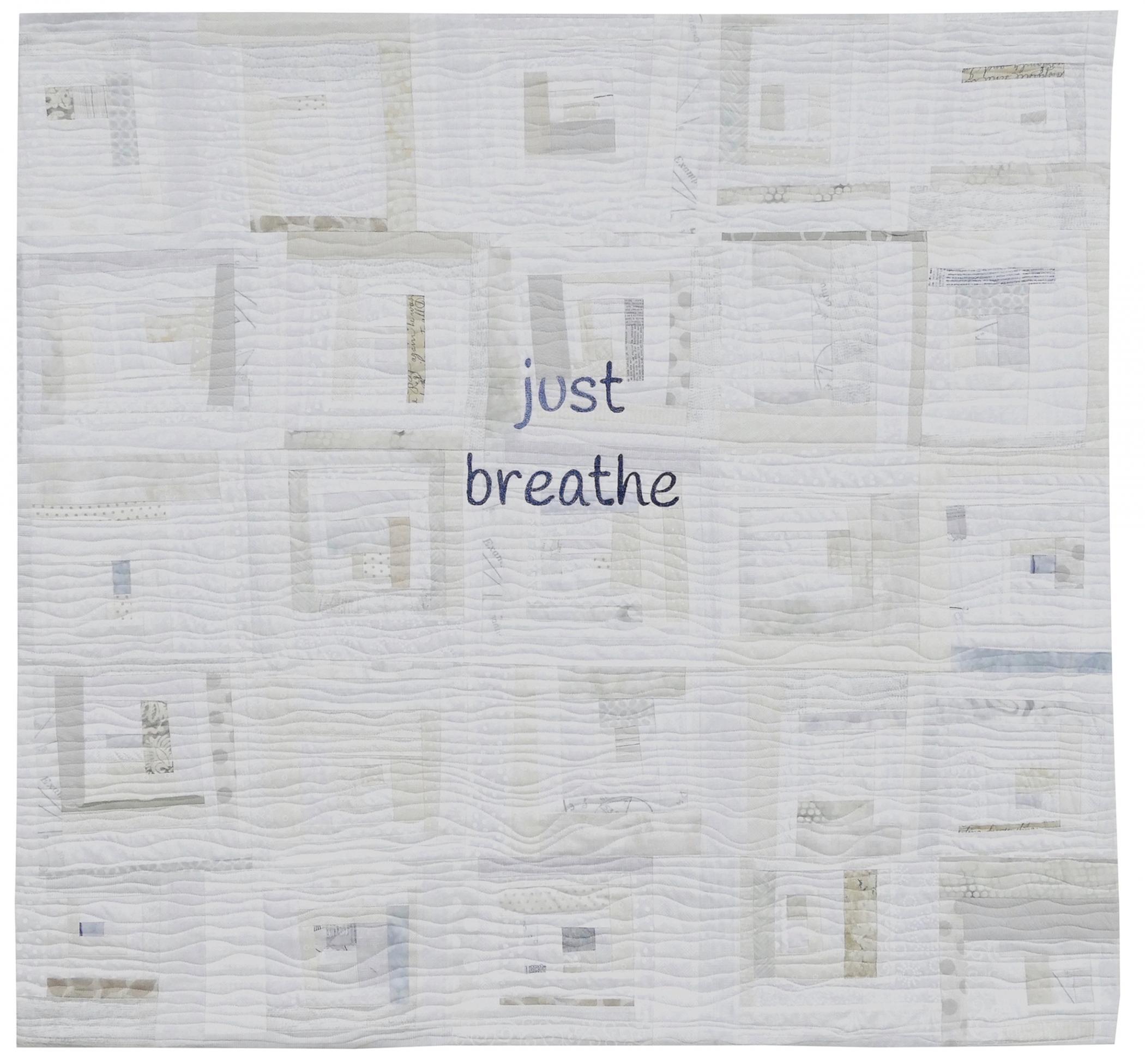Wonky log cabin blocks, machine embroidered, machine pieced, long arm quilted
