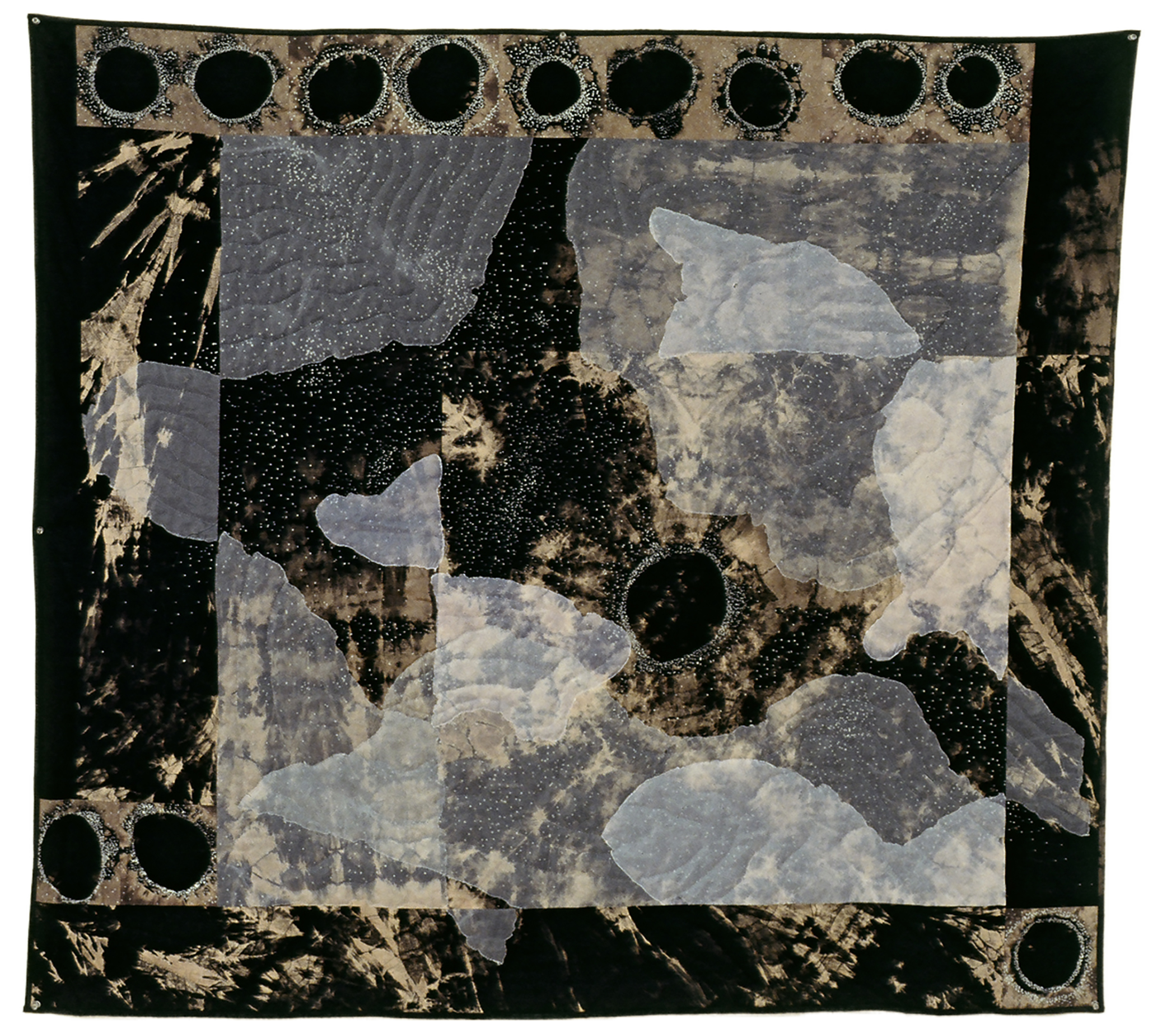 An astronomer once told me that within one year we would have a photograph of a black hole, as the thinning of the ozone layer is a boon to astronomers. They are able to observe more of the heavens because of its diminishment. This quilt was included in Quilt National 1991.