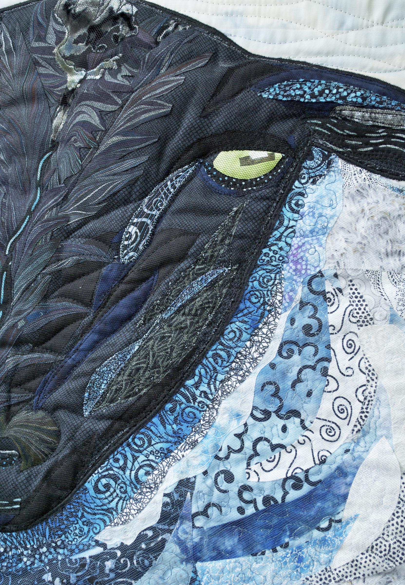 Another misty morn’ and Belle sighs as she leans into the side of the sheep shed, wishing spring would arrive. Or maybe she is wishing the shearer would come and rid her of this heavy fleece. Whatever the reason, this ewe is blue. I had wanted to try Susan Carlson’s collage technique to depict a sheep for some time. Belle was the first of a whole barnyard of livestock I have enjoyed creating. It keeps me thinking of spring through the rainy winter.
