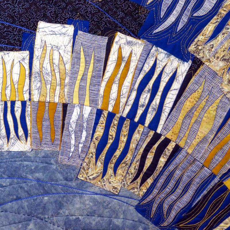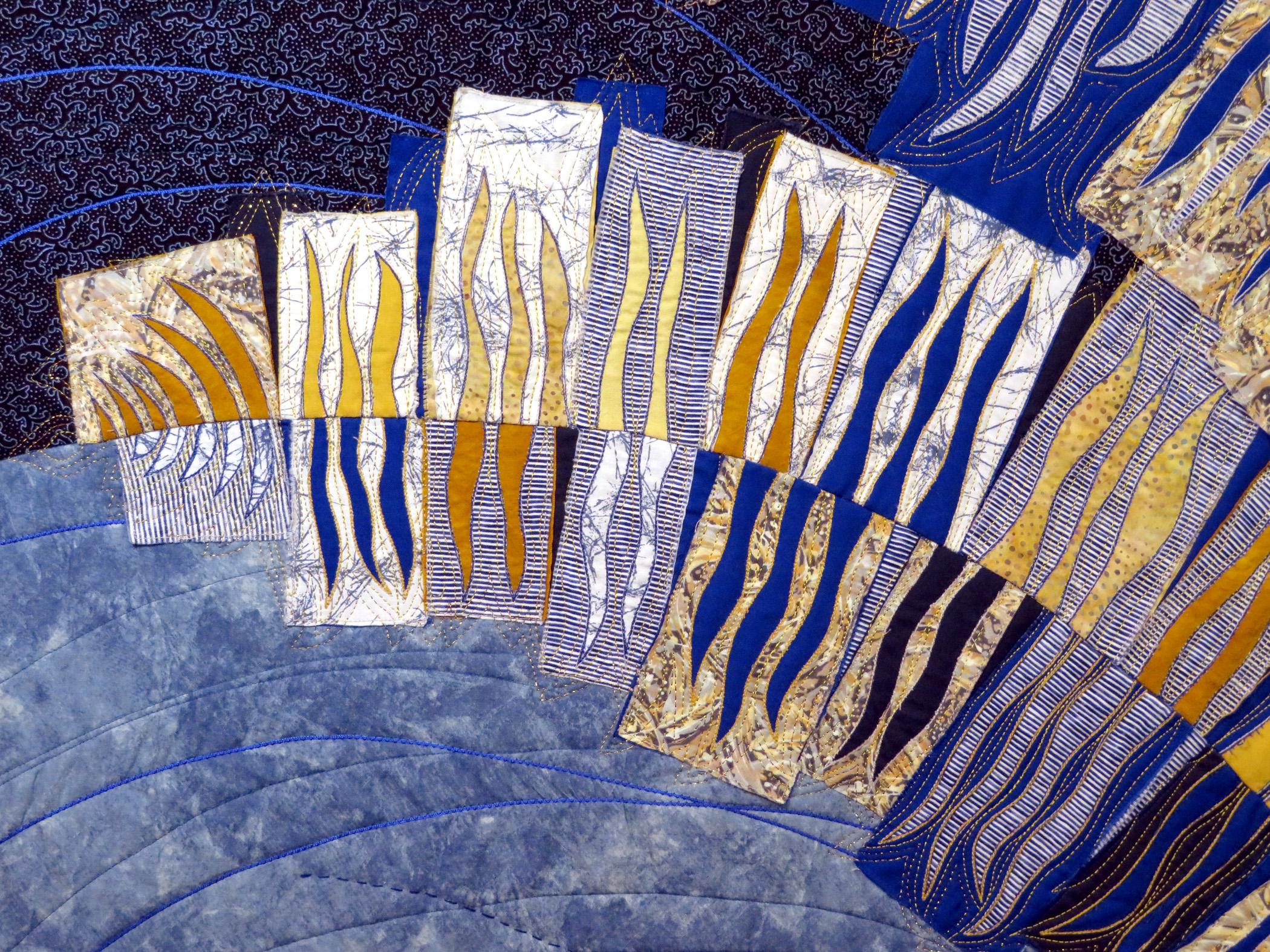 Hand dyed, pieced, appliquéd, reverse appliquéd, couched, machine quilted, hand quilted