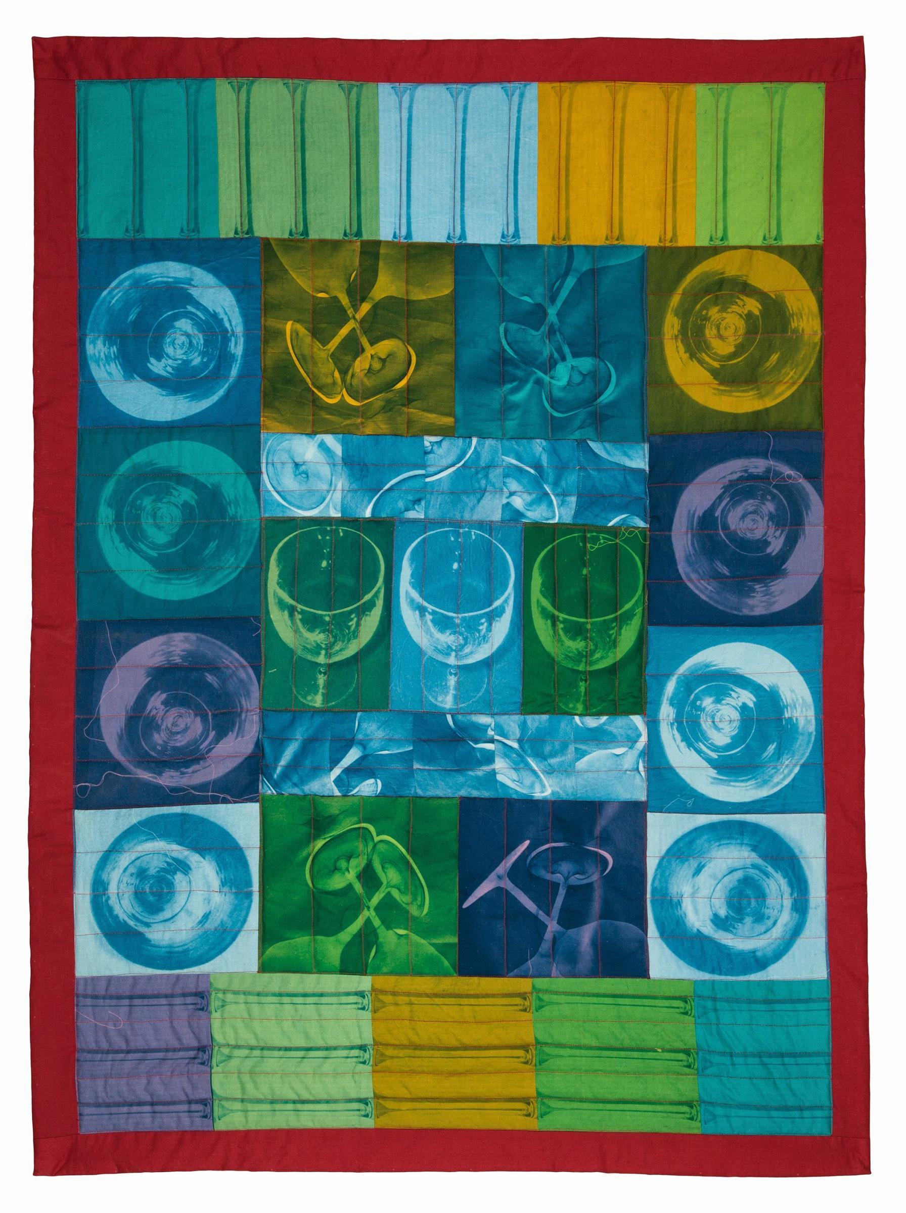 Browse the Collection Bottoms Up! Sandra Sider Size 44 in x 32 in (112 cm x 81 cm) Exhibition Redirecting the Ordinary (SAQA Global Exhibition) Price $0.00 Buy Now >> Wine glasses are transparent objects that glow with rich color when wine is poured. But fill them with light, and magical, unpredictable images appear.