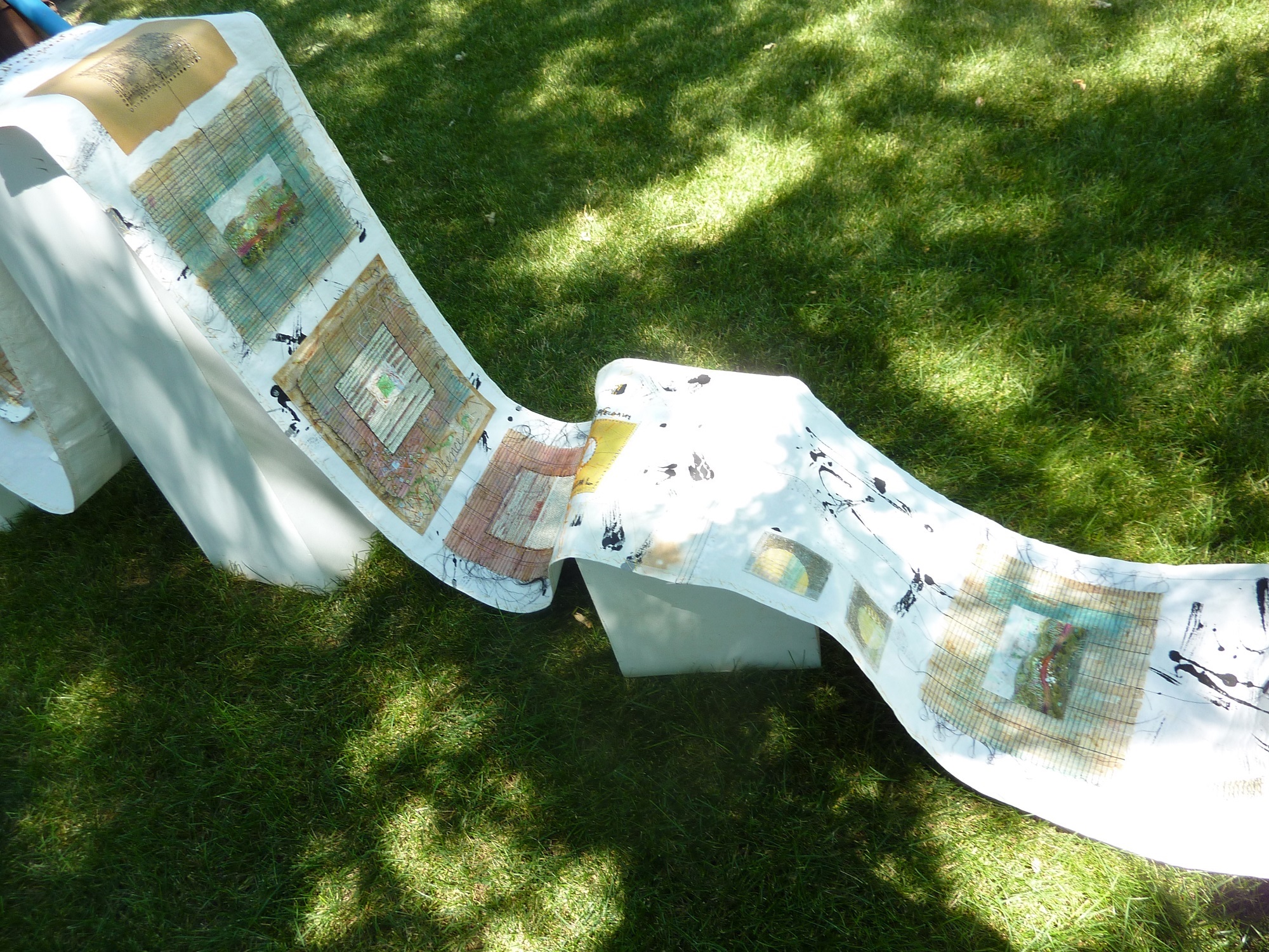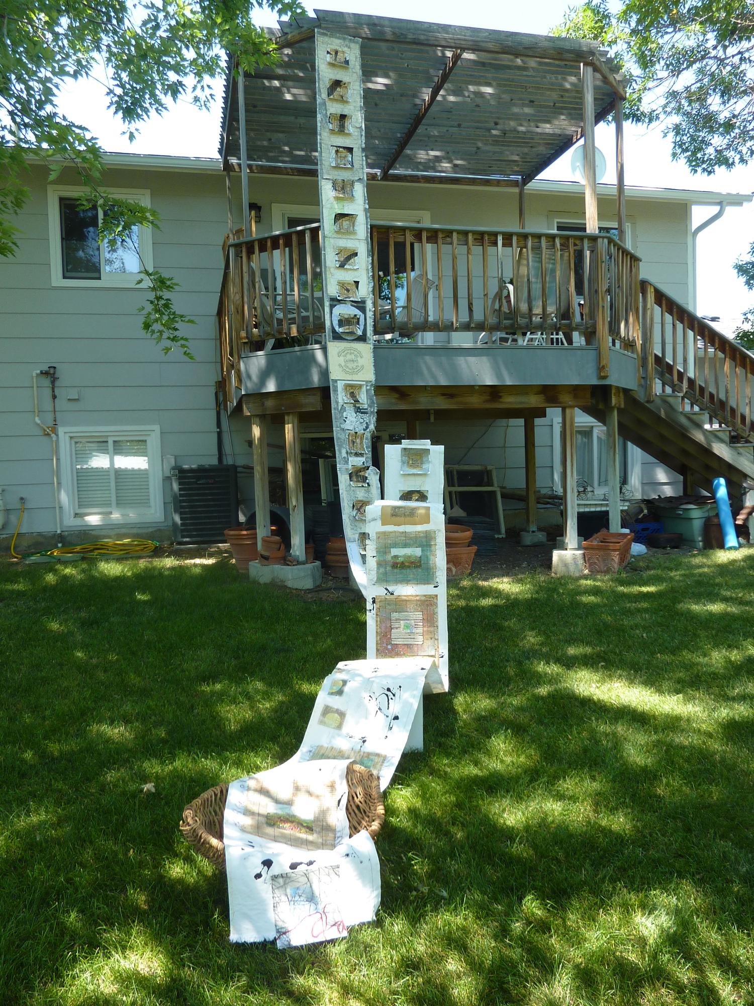 Every day we were asked to shelter at home during the covid-19 epidemic, I added another 12" section to a strip of fabric. After 32 days, I stopped, because I was busy with other projects. I plan to begin again, if necessary. This will be shown at Yellowstone Art Museum, Billings, MT from Oct. 15, 2020-Jan. 10, 2021. The curators there have never had to hang a 32 foot-long textile piece before, and are showing their own artistic sides with their suggestions. I had to photograph this in my backyard because rattlesnakes have been reported in the geologically interesting section of our park where I planned to shoot. Poisonous snakes. Virus. What a year.