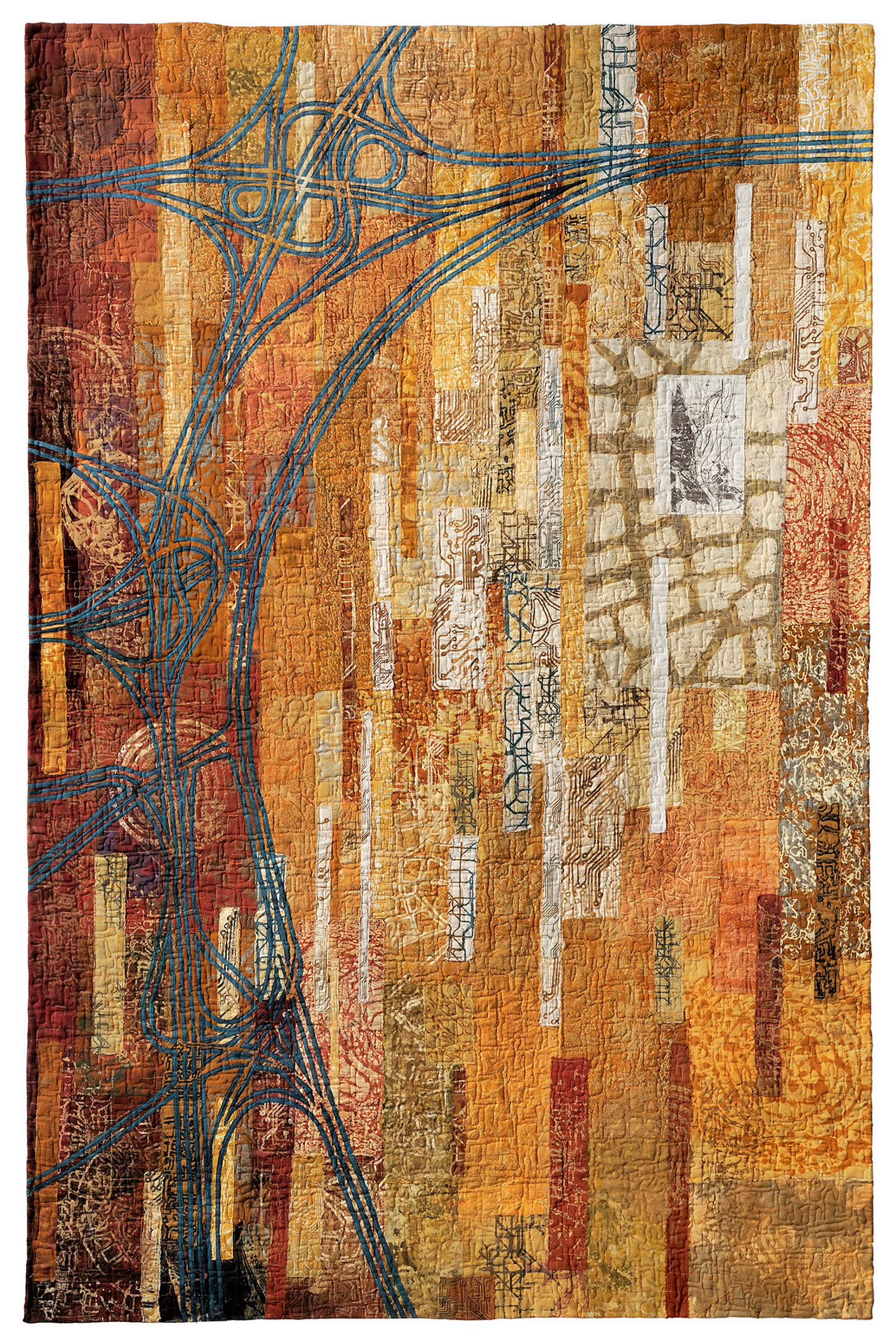 A complicated highway system is contrasted with visual fragments of an old historical cit. The juxtaposition of these labyrinth - or grid like - urban textures offer a rich ground for associations on the alterations of the city: Whether the rushy changes over the last few decades have been organic or if the changes have helped make the city more livable, are still burning questions.