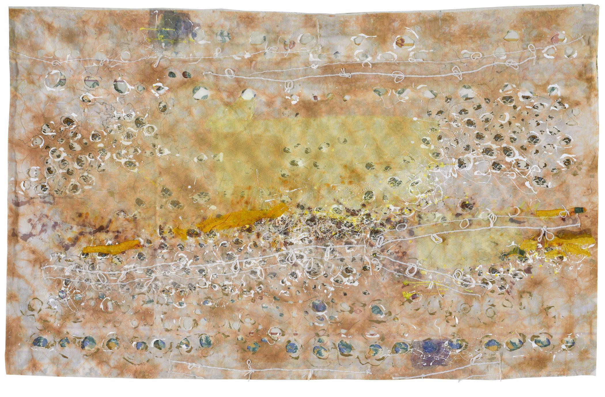 Found fabric, industrial acrylic paint