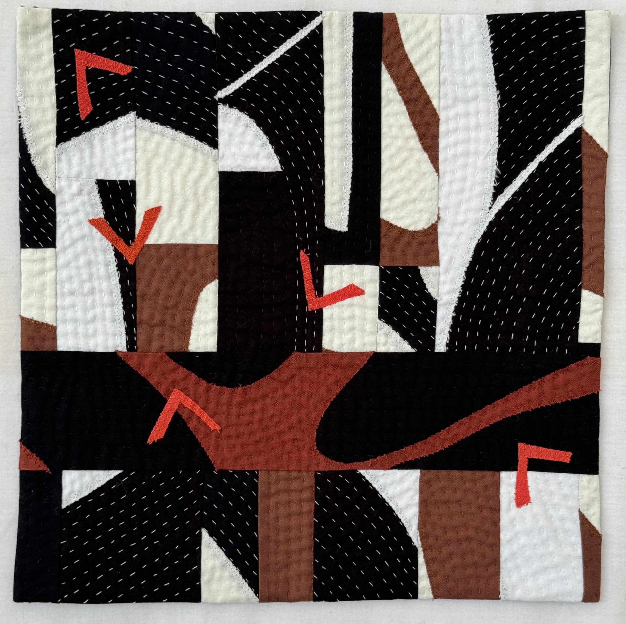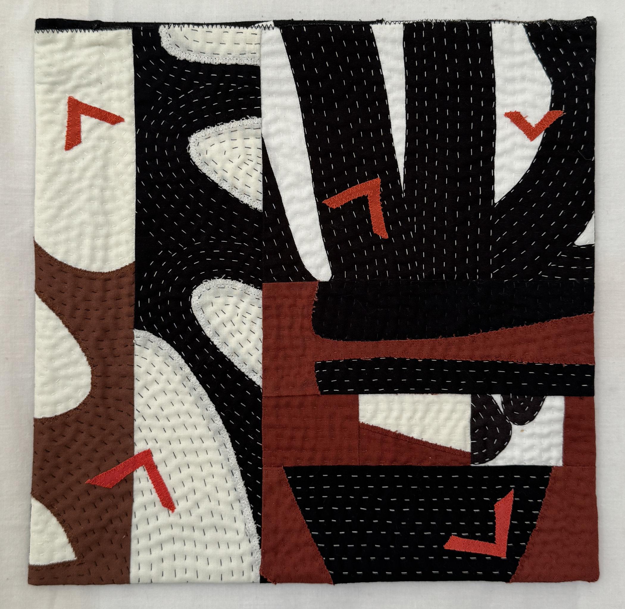 Raw edge reverse applique. Machine pieced and hand quilted.