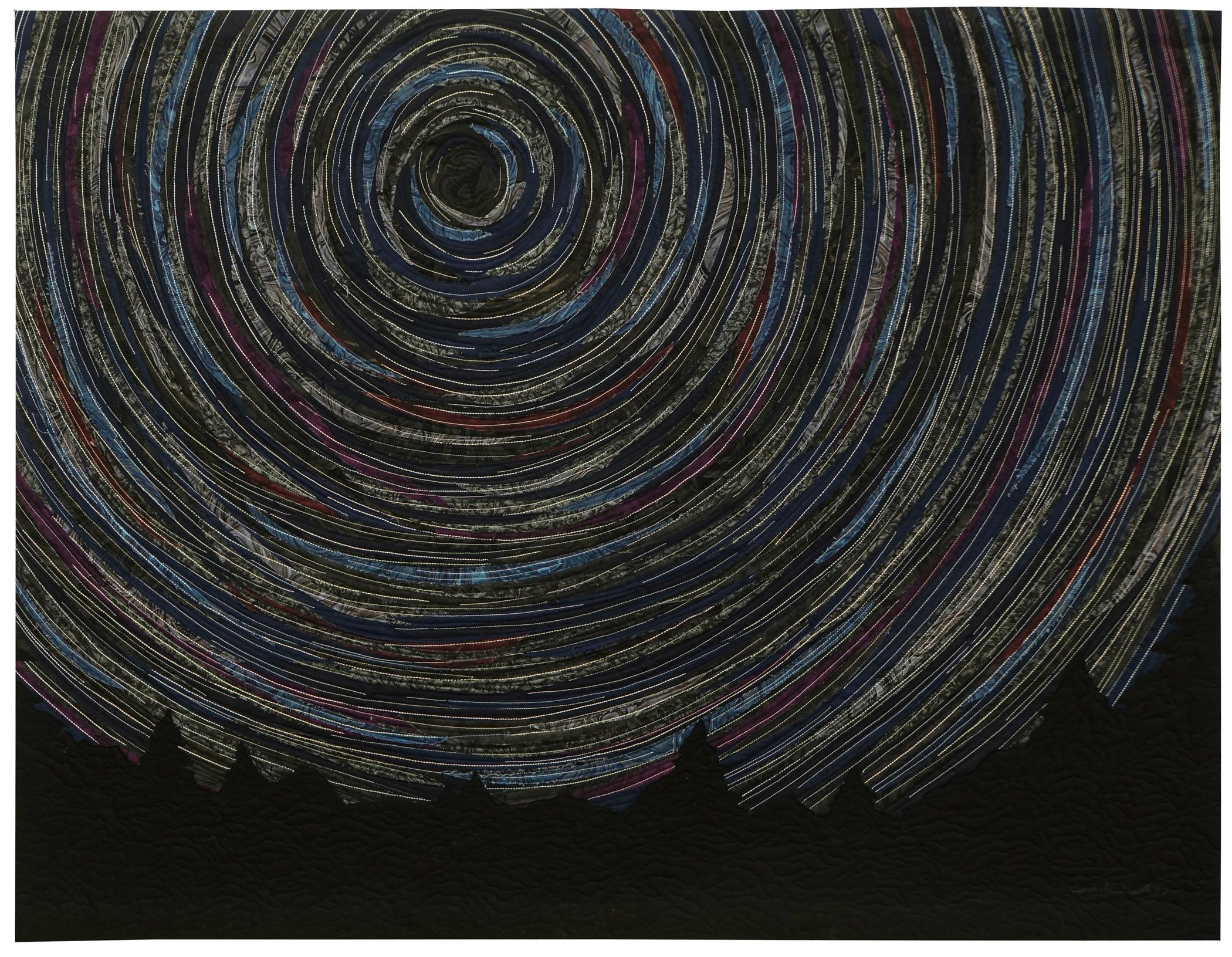 Arlo Guthrie once said you can’t have a light without a dark to put it in. Living in rural Maine, we see so many stars on a clear night. Star trail photography stacks multiple images to reveal concentric lines formed by the movement of the stars which rotate around the North Star. Snug beneath the heavens, we watch the light of the stars travel to us. My poem describes the Canticle of the Night: