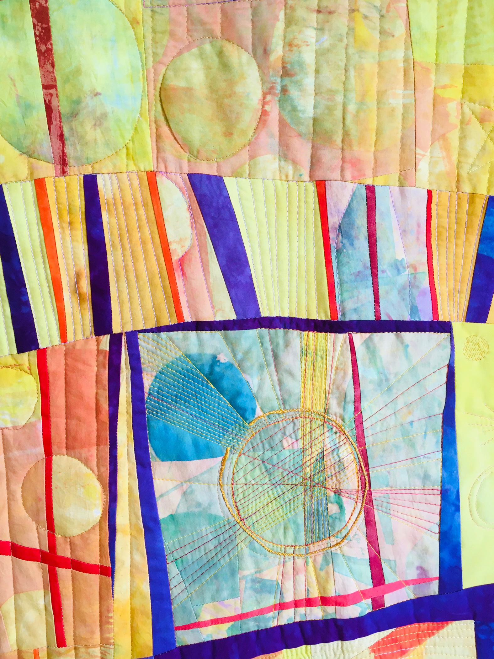 I was long fascinated by the ancient cathedrals which surround us in France and last year came this urge of transposing the irradiating spirituality emerging from these exceptional buildings into fabrics. They are the pinnacle of spiritual reflection, the place where all forces come together, be it in the geographical location, the architecture or the possibility of recollection and faith. The colors and solar motives convey the strength of the joy one can feel when one is meditating inside.