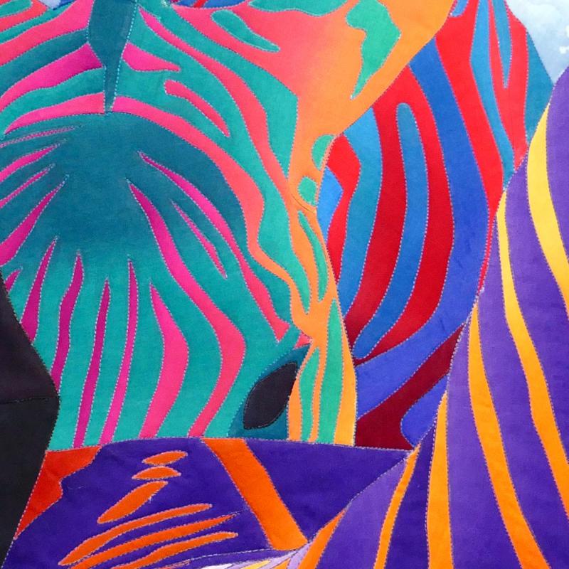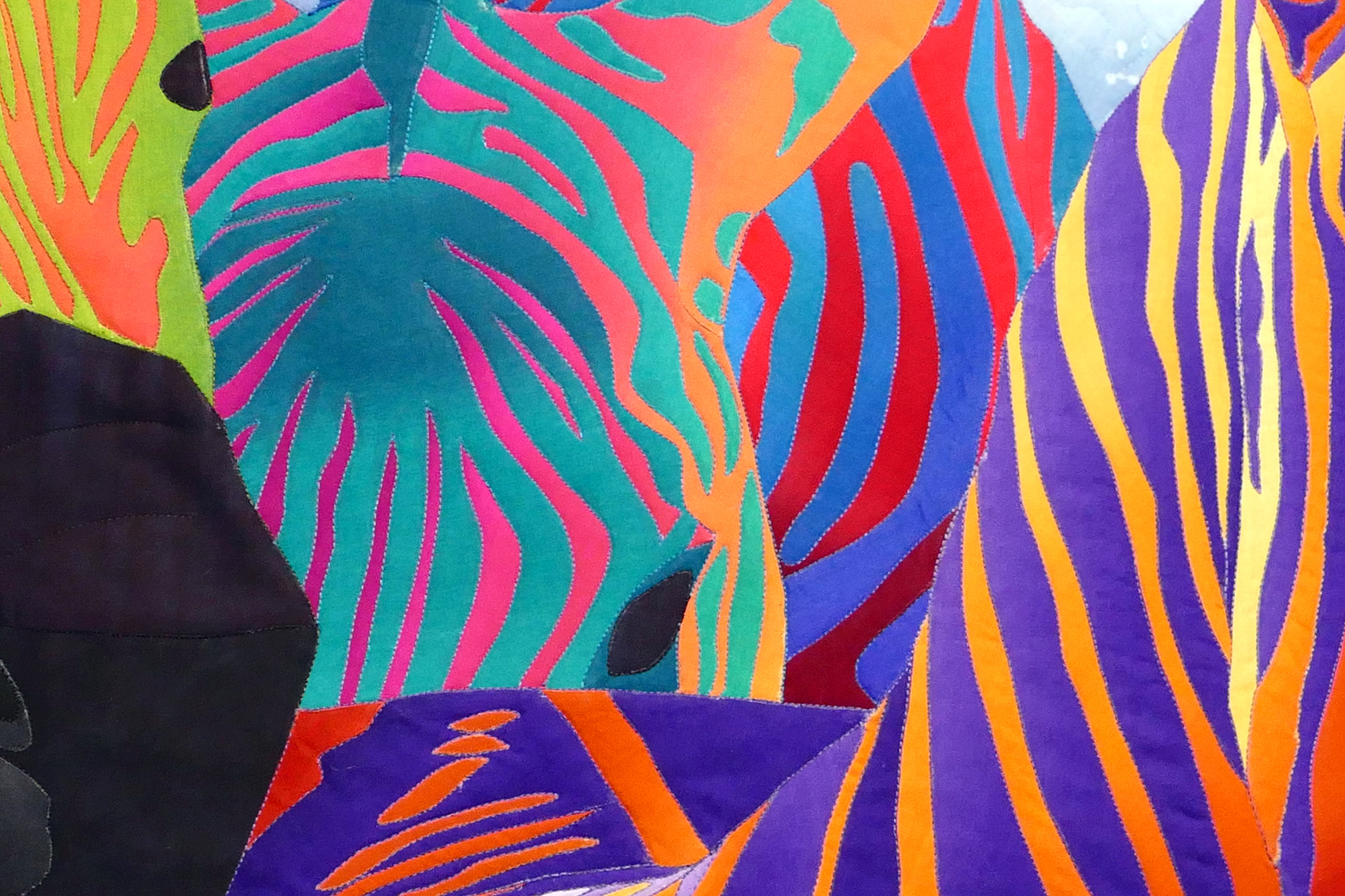 Diversity is a core element of America’s openness, freedom, and creativity. This quilt builds a beautiful fabric by juxtaposing opposites and a rainbow of colors. Yet, as in chaos theory, a subtle but important change occurs at the edges of the figures. Colors begin to merge just as cultures, races, and ethnicities slowly merge, reminding us of the rich, exciting country diversity has created. I hope for a return to an appreciation of the incredible ideas with which we are blessed. When we listen to and care about each other, we can build a society better for all.