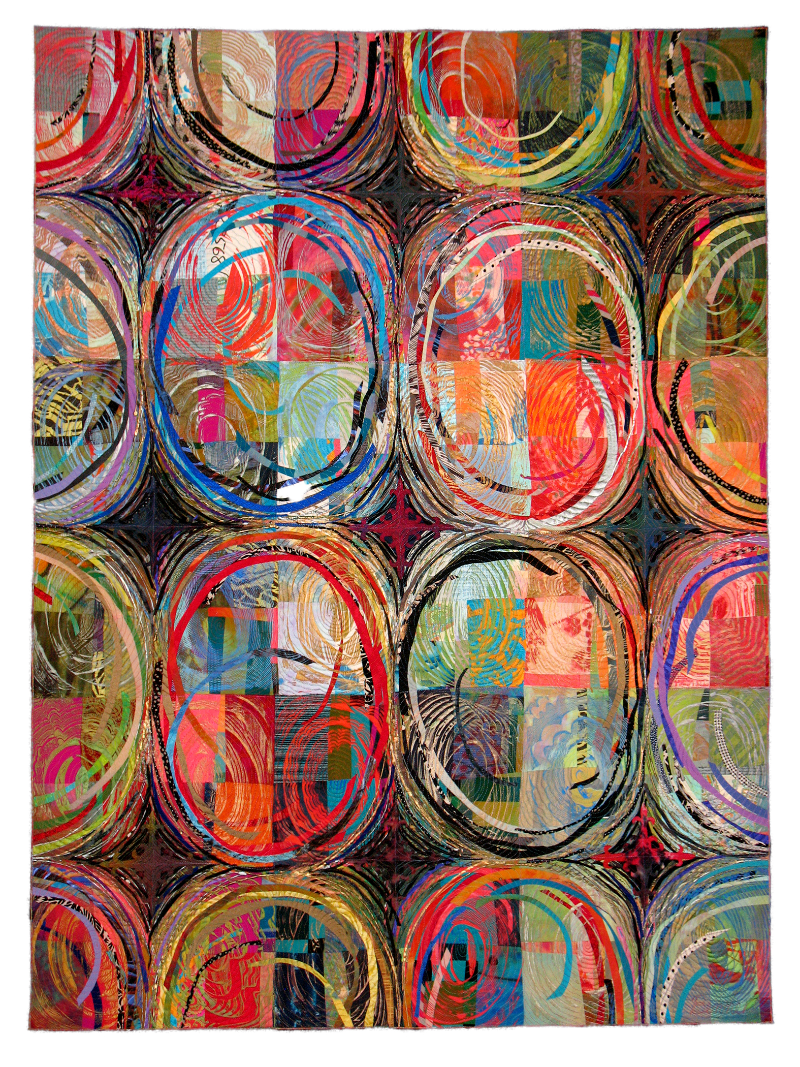 Dye and paint on fabric (silk, cotton, poyester, commercial and found fabrics), cotton batting, cotton backing
