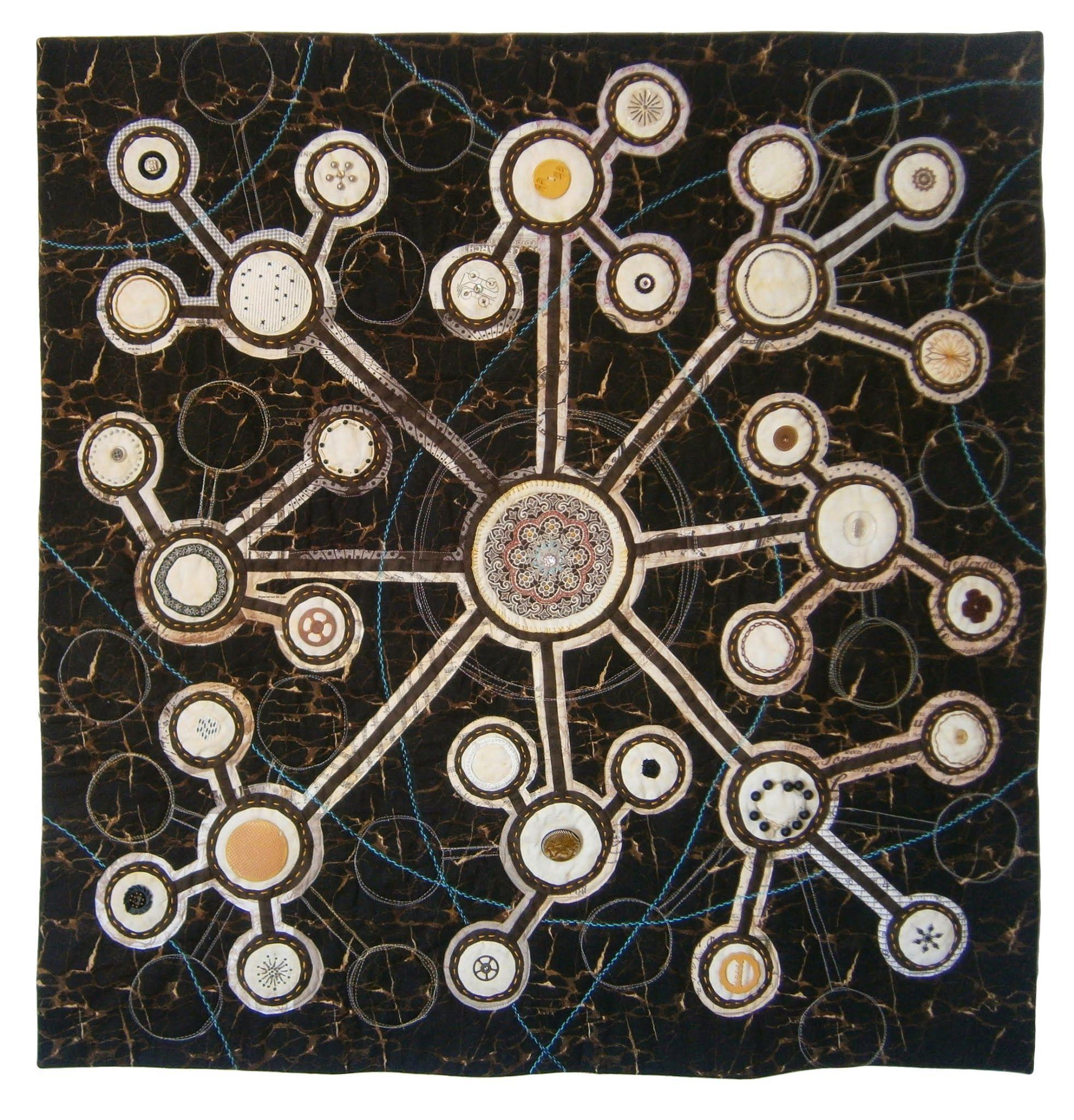 I think of my life as divided into many compartmentalized sections, with my art soul at the center. The small circles are things on my to-do list swirling around my mind; and the quilted, almost invisible circles are all the things I am ignoring or forgetting or am afraid of forgetting.