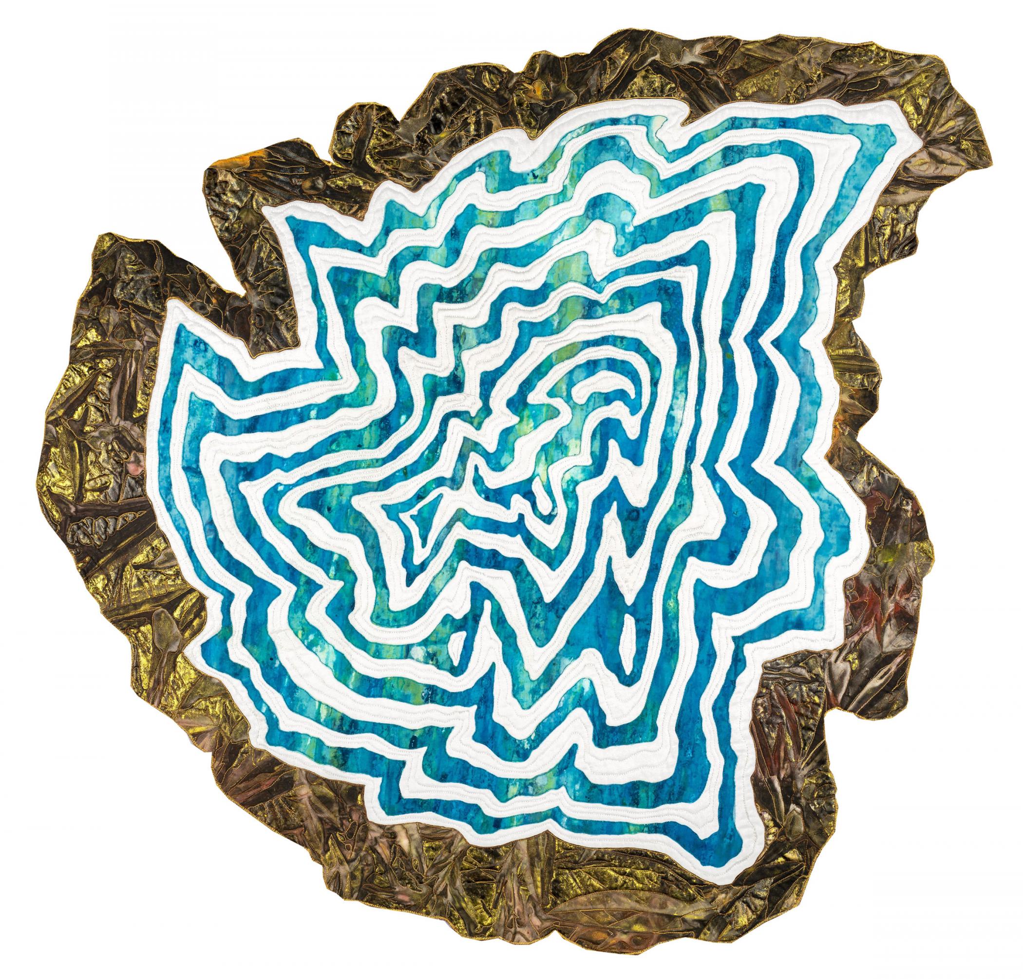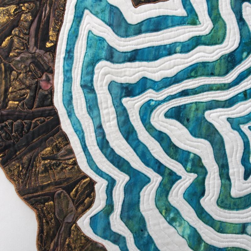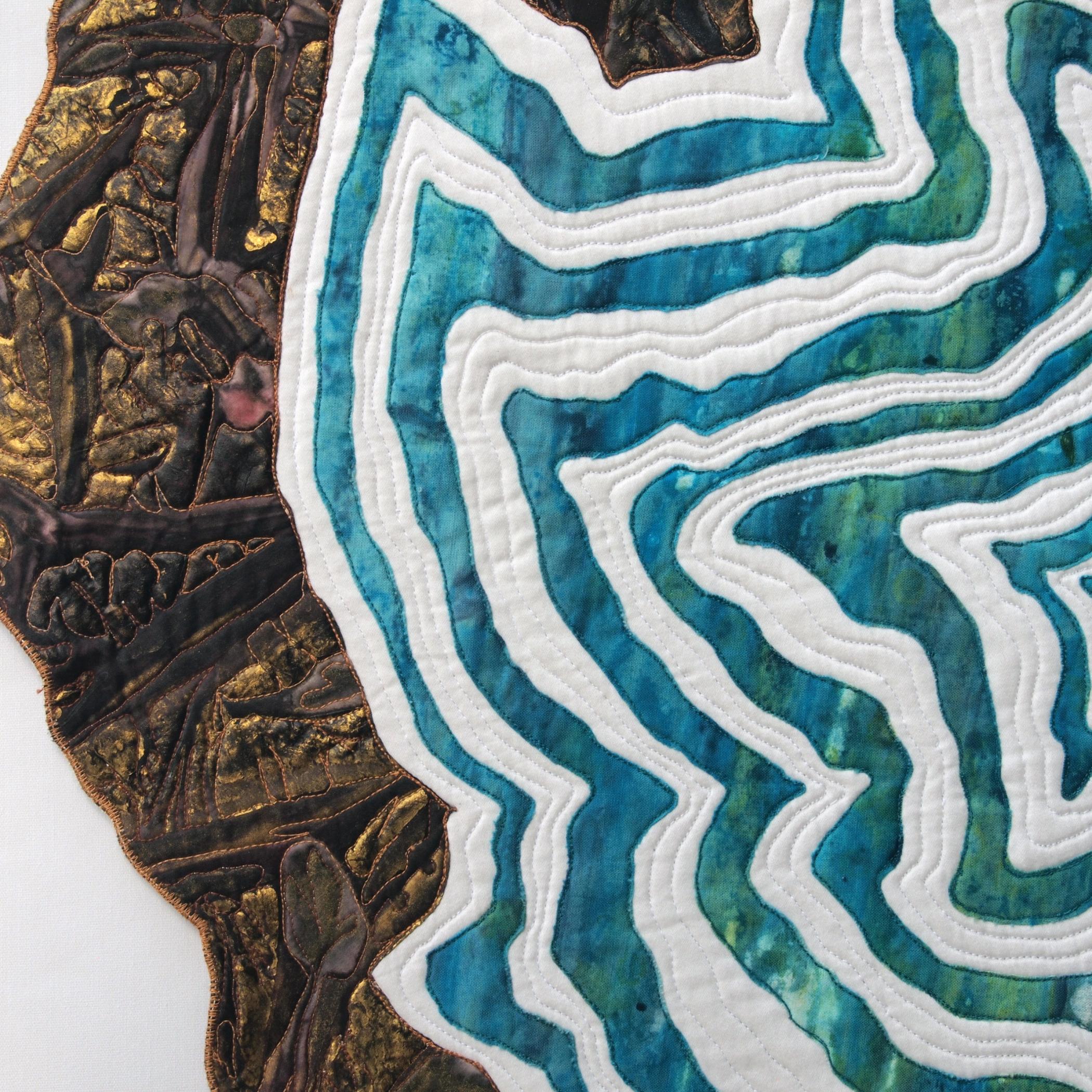 Dyed, hand painted, raw edge appliquéd, stitched