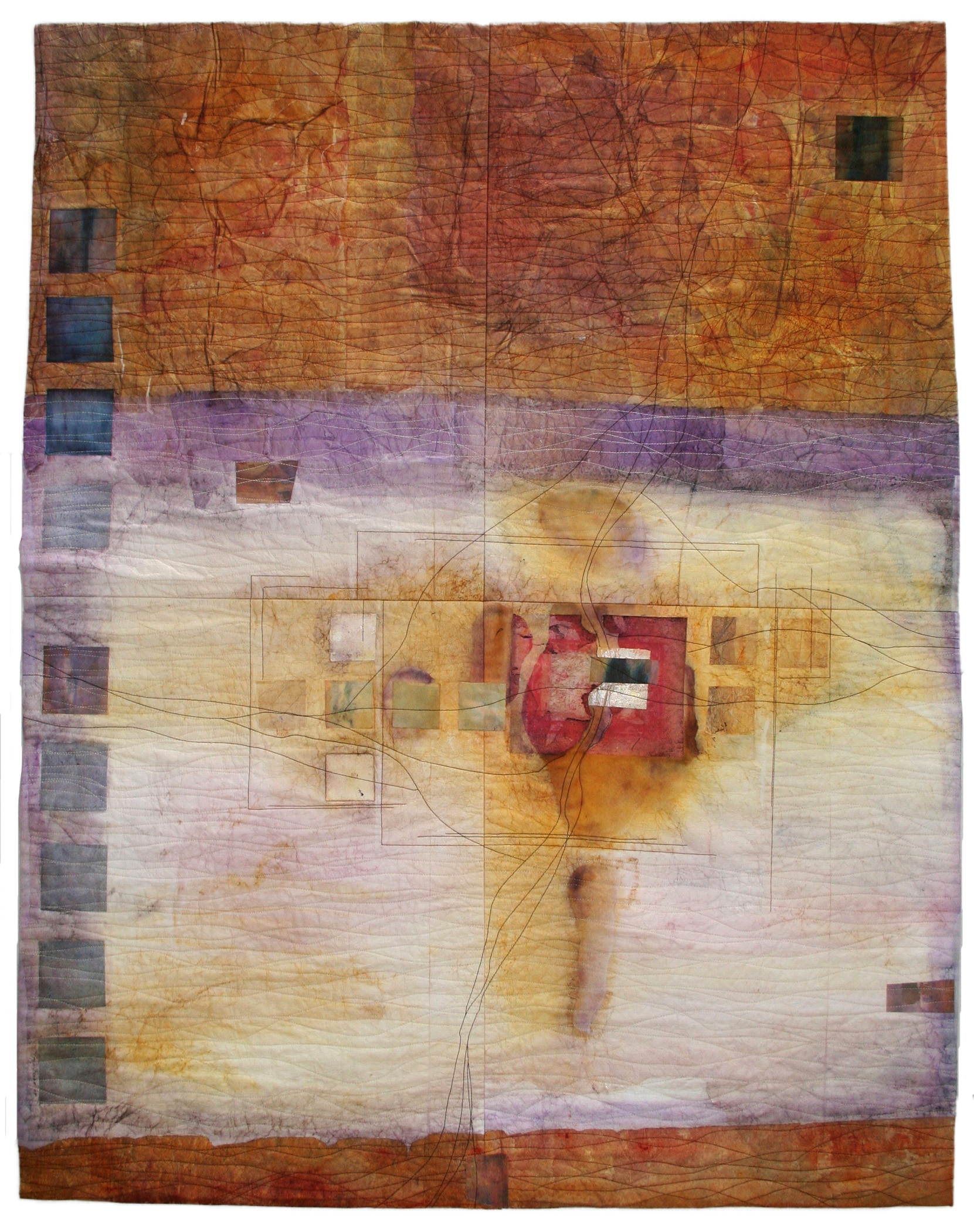 Whole cloth with collage, hand painted, machine quilted