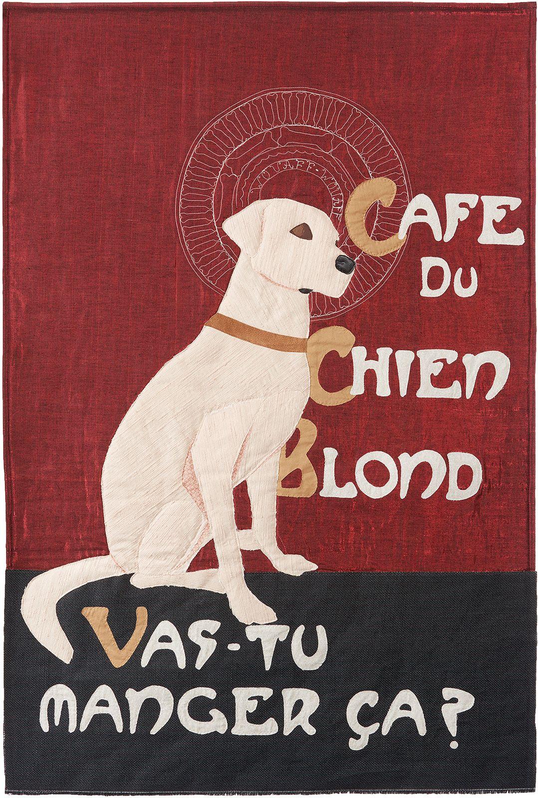 Chien Blond was inspired by posters for Le Chat Noir cabaret, made by 19th century French artist Theophile Steinlen. Minimal colors and shading represent the cat and his message. In this poster, I used my dog as the model, giving his body a similar definition to Steinlen’s cats. “Tu vas manger ça?" means “Are you going to eat that?”-something on the mind of my dog all the time.