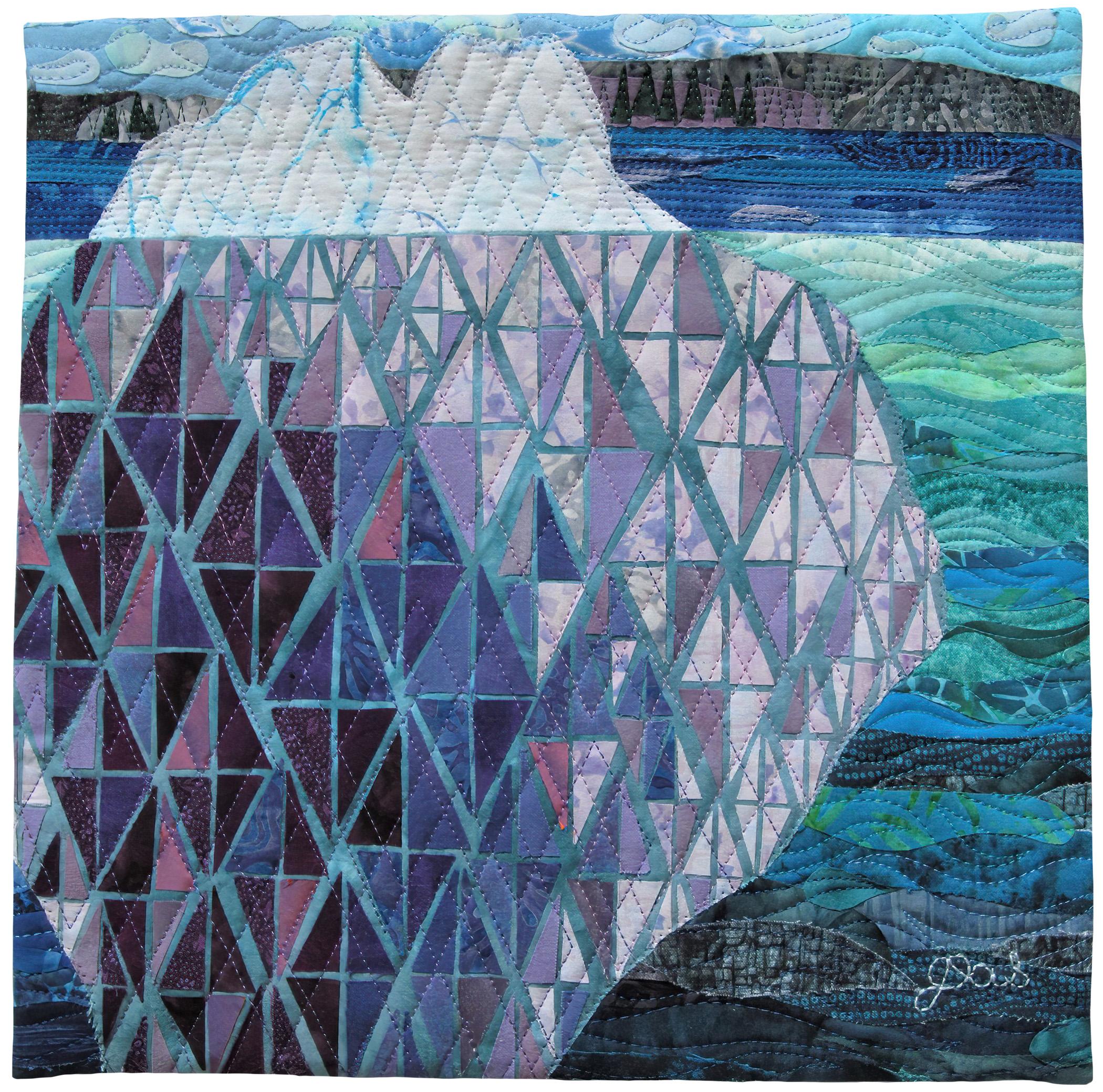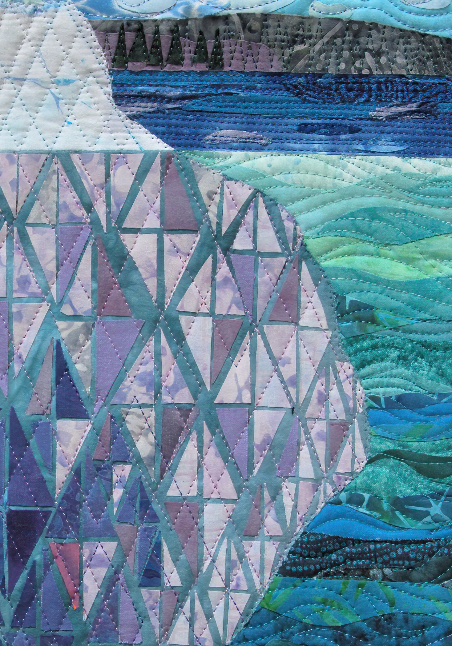 Hand dyed, fused, raw edge appliquéd, machine free motion quilted