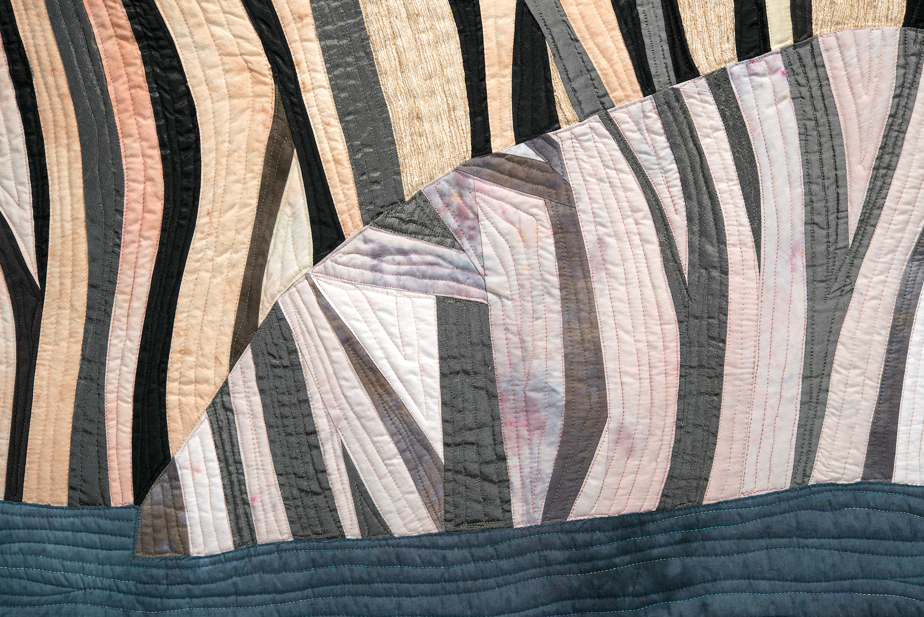 Dyed, cut, machine pieced, machine quilted, hand sewn