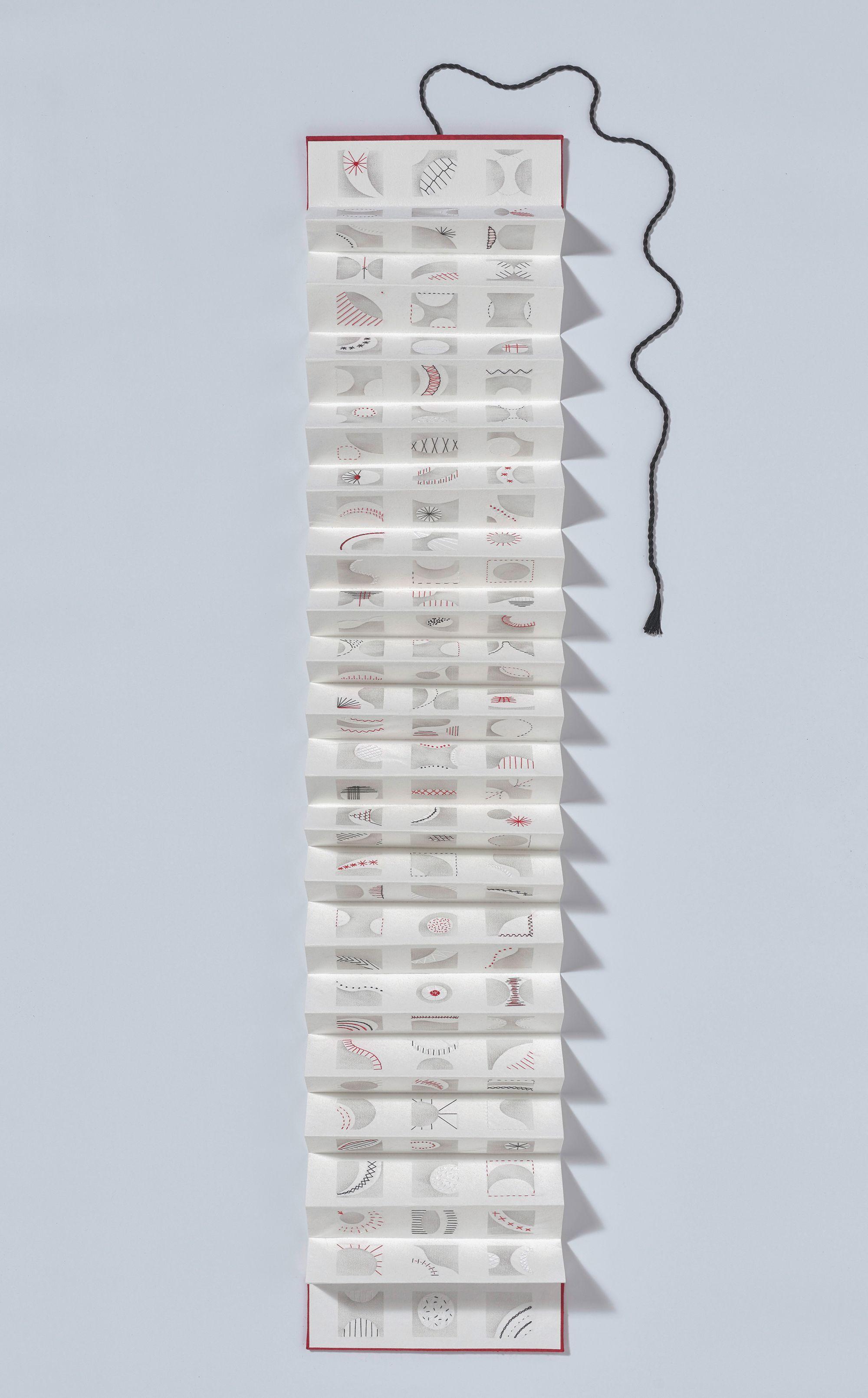 The beauty of an antique zigzag folded map from the Siebold collection in the Japan Museum in Leiden, the Netherlands, inspired me to make this leporello book. The forms were chosen in response to the order of Japanese society in combination with the facial colors of the geishas.