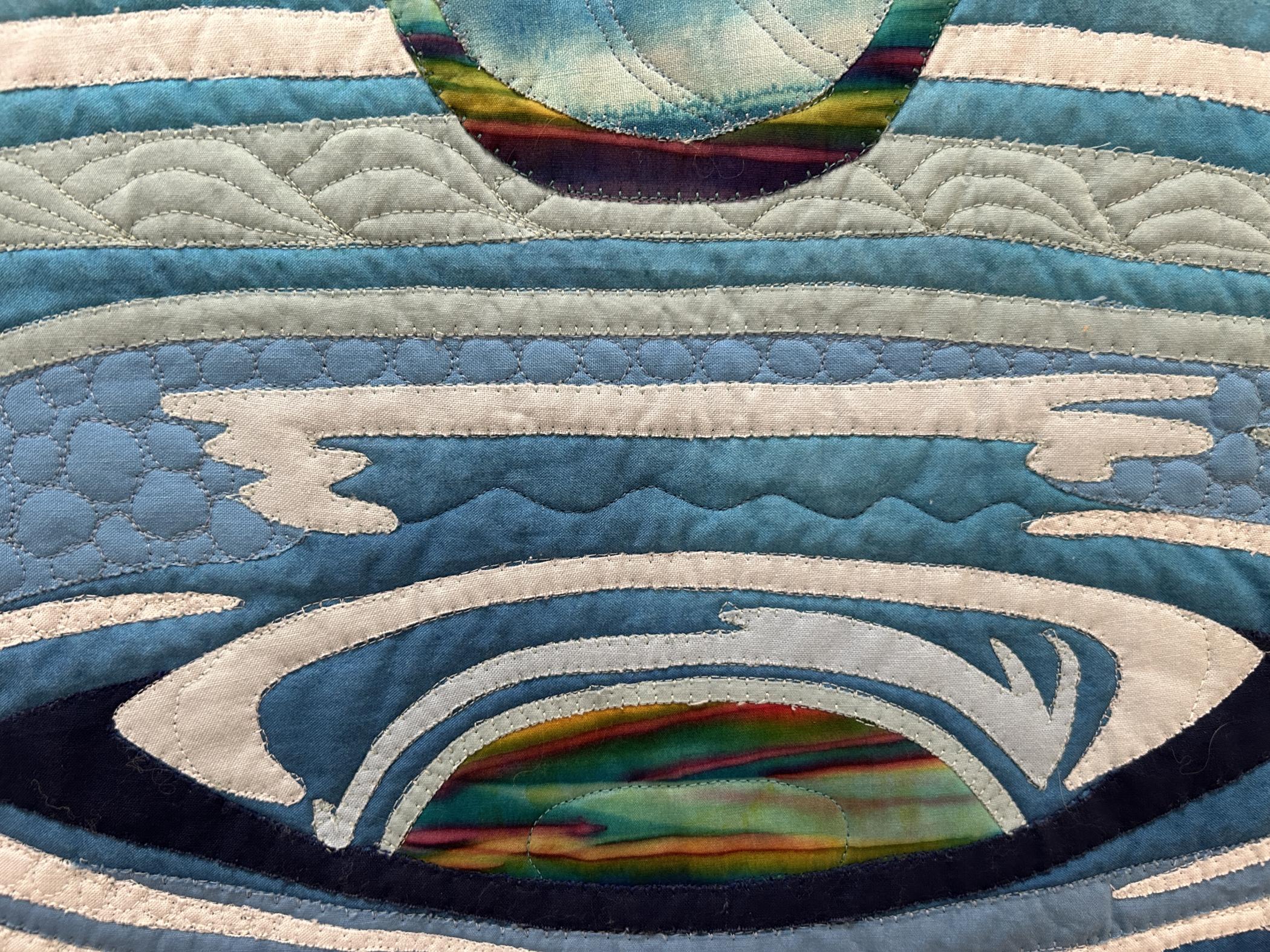 raw-edge applique, free-motion quilting, and a framed binding