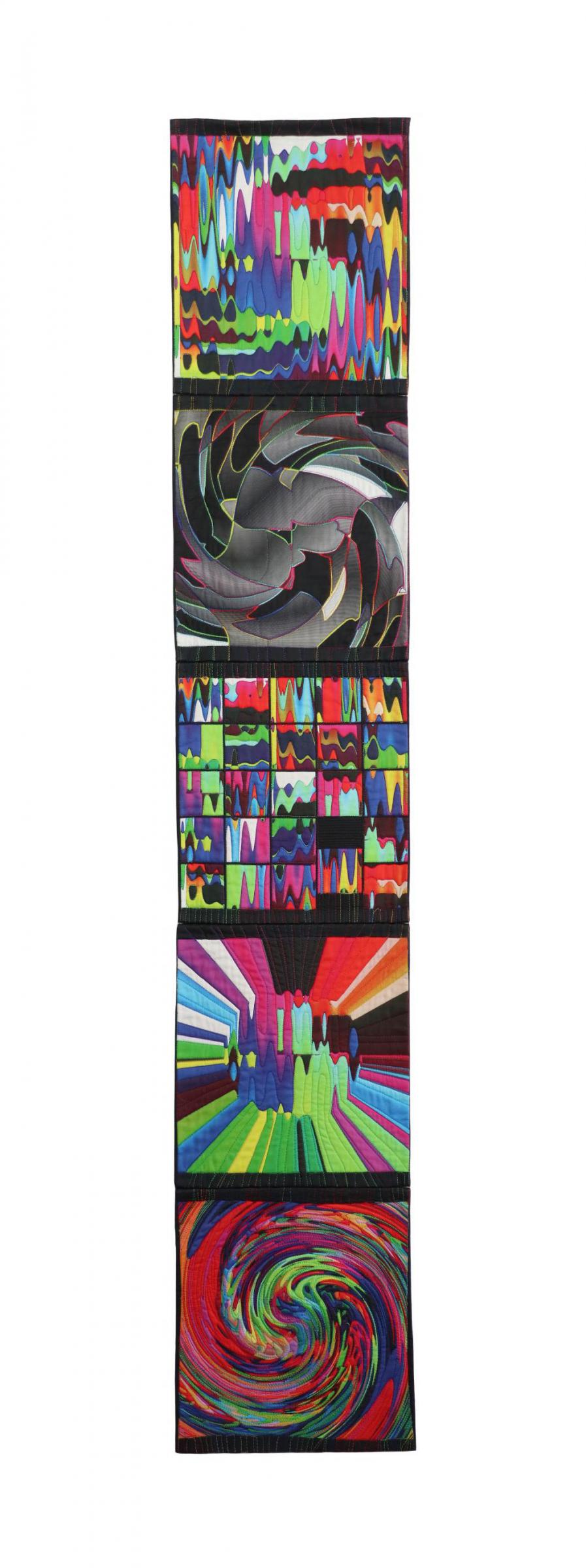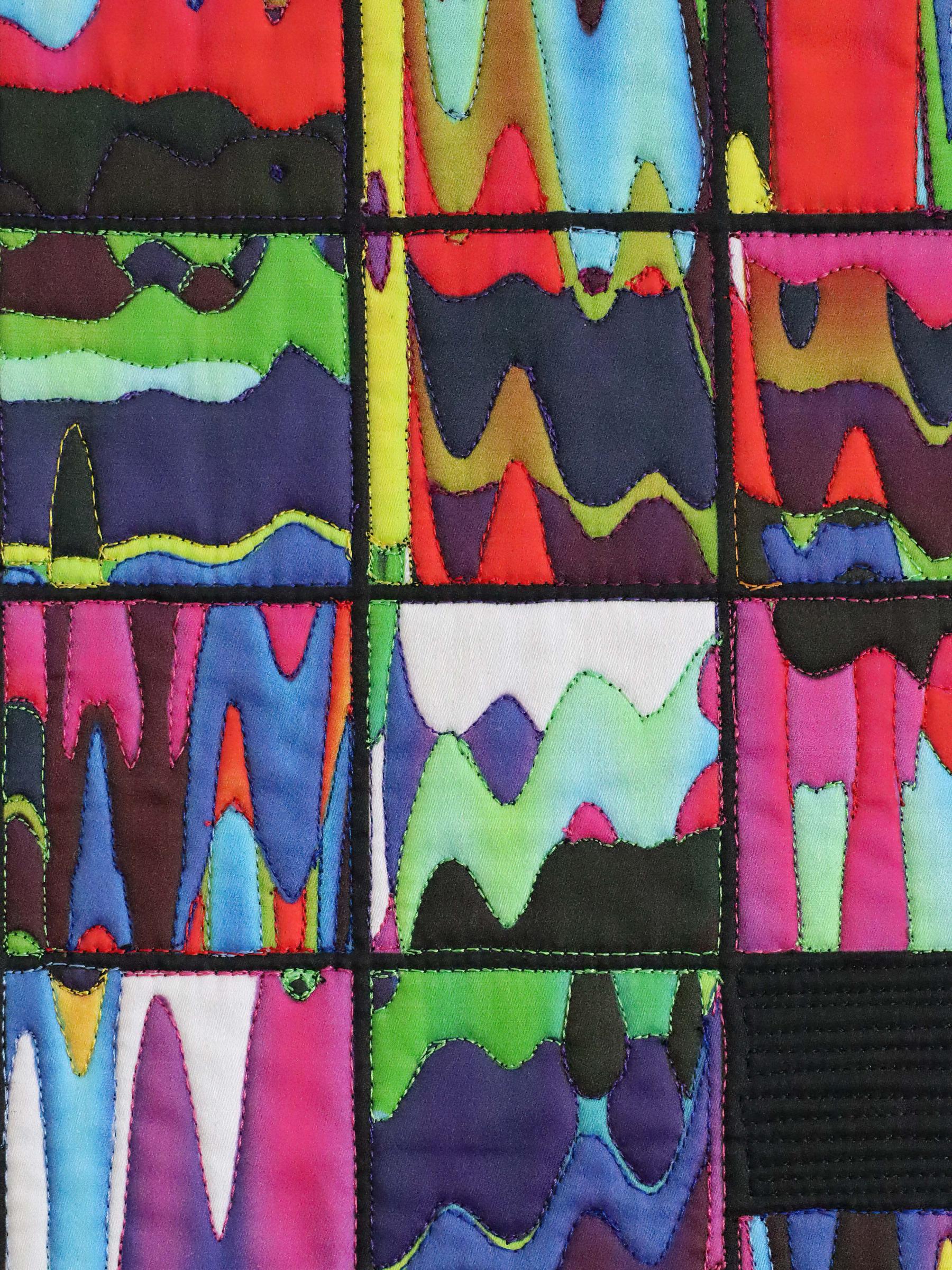 Colour is music for the senses. The combination of colour and music is inspirational and mood-lifting. I try to express those feelings in this textile work. Each 'movement' of this 'symphony' has a musical name that relates to the positive sensations I receive from their colours and shapes: Allegro, Adagio, Allegro Vivace, Scherzo, and Rondo.