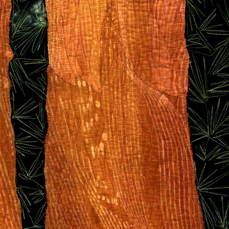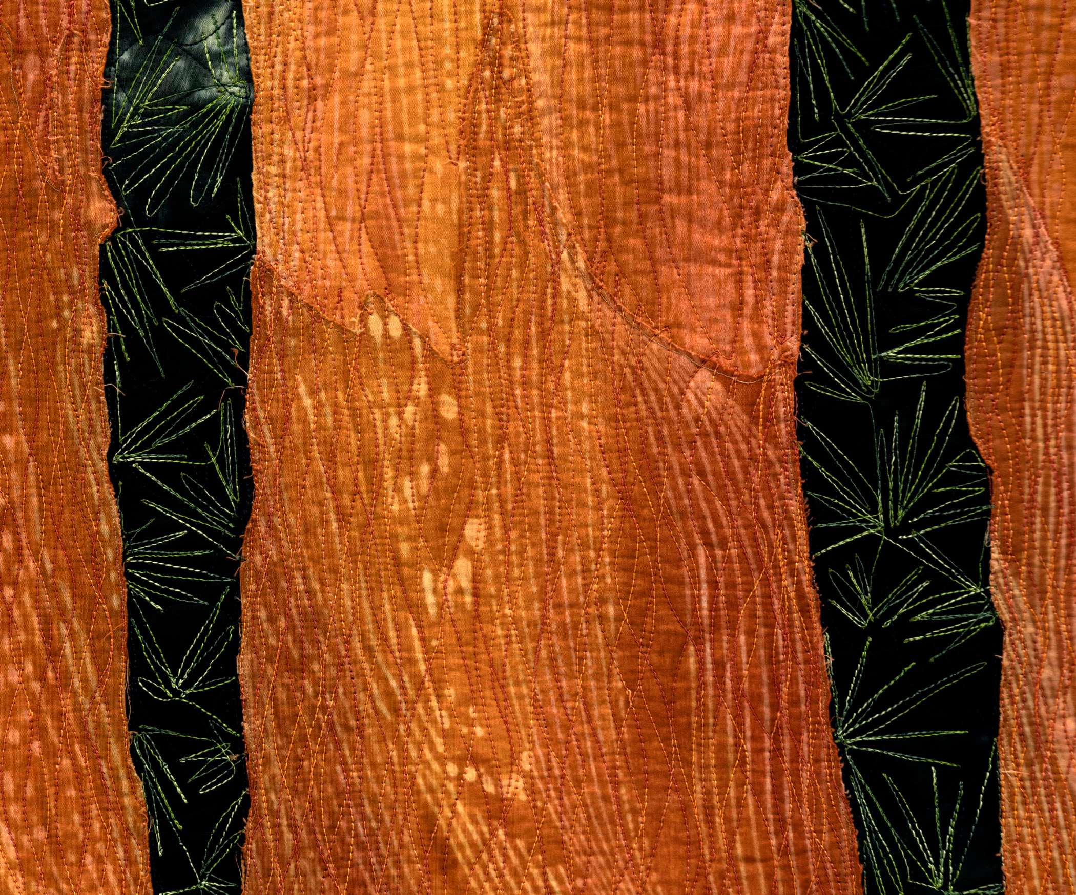 Hand and resist dyed, raw-edge constructed, machine quilted