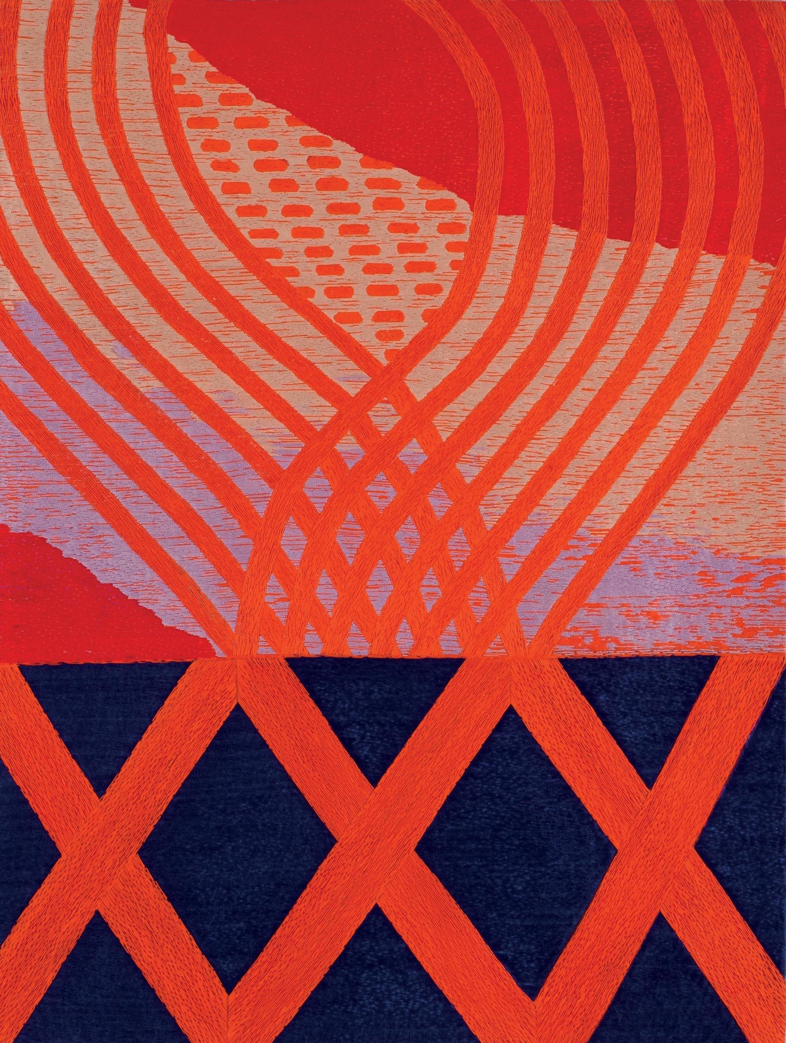 Hand-worked random running stitches covering entire surface