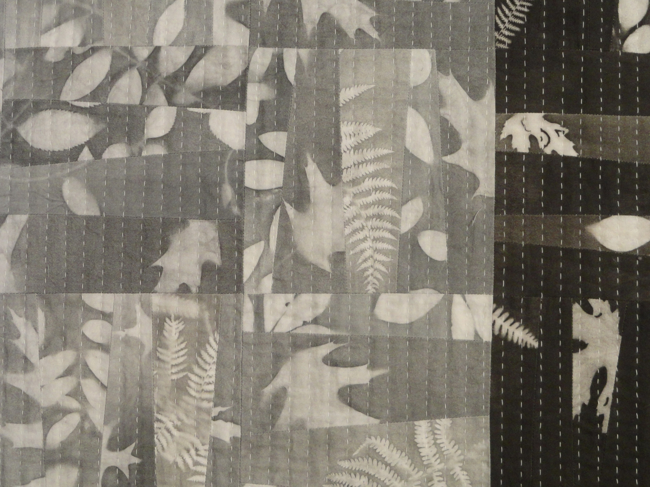 Inspired by a workshop with Jane Dunnewold, who challenged her students to work with only materials at hand, Convergence is part of a series of quilts using scraps of my solar printed fabric. The pieced squares are arranged to convey the coming together of opposites; a merging, a convergence.