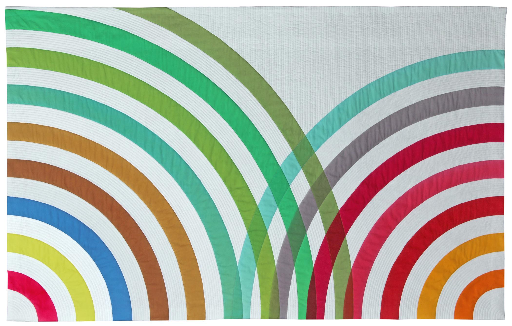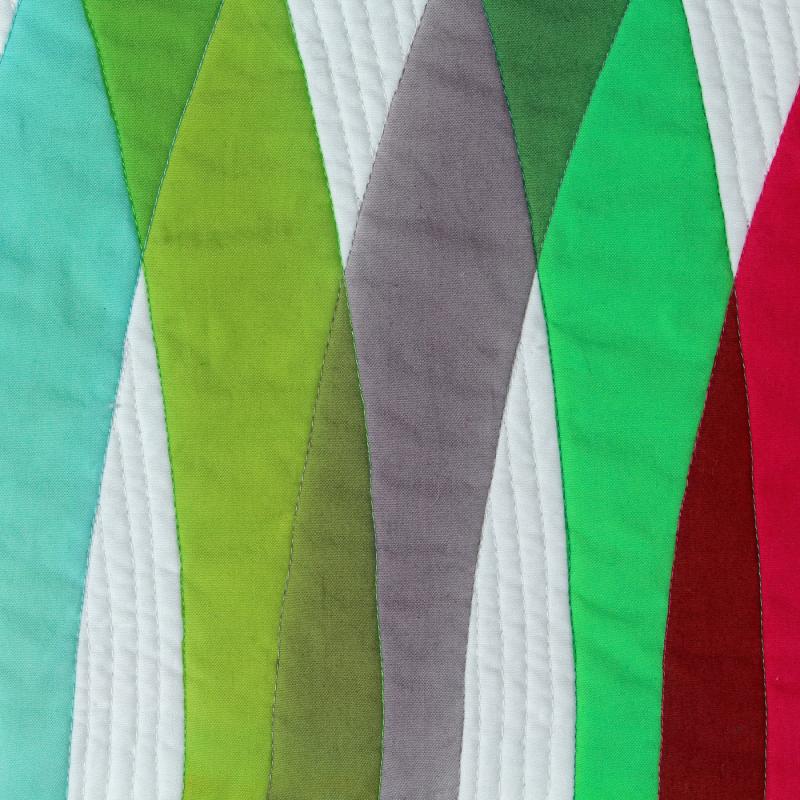 Batiked with painted dyes, machine quilted, hand stitched