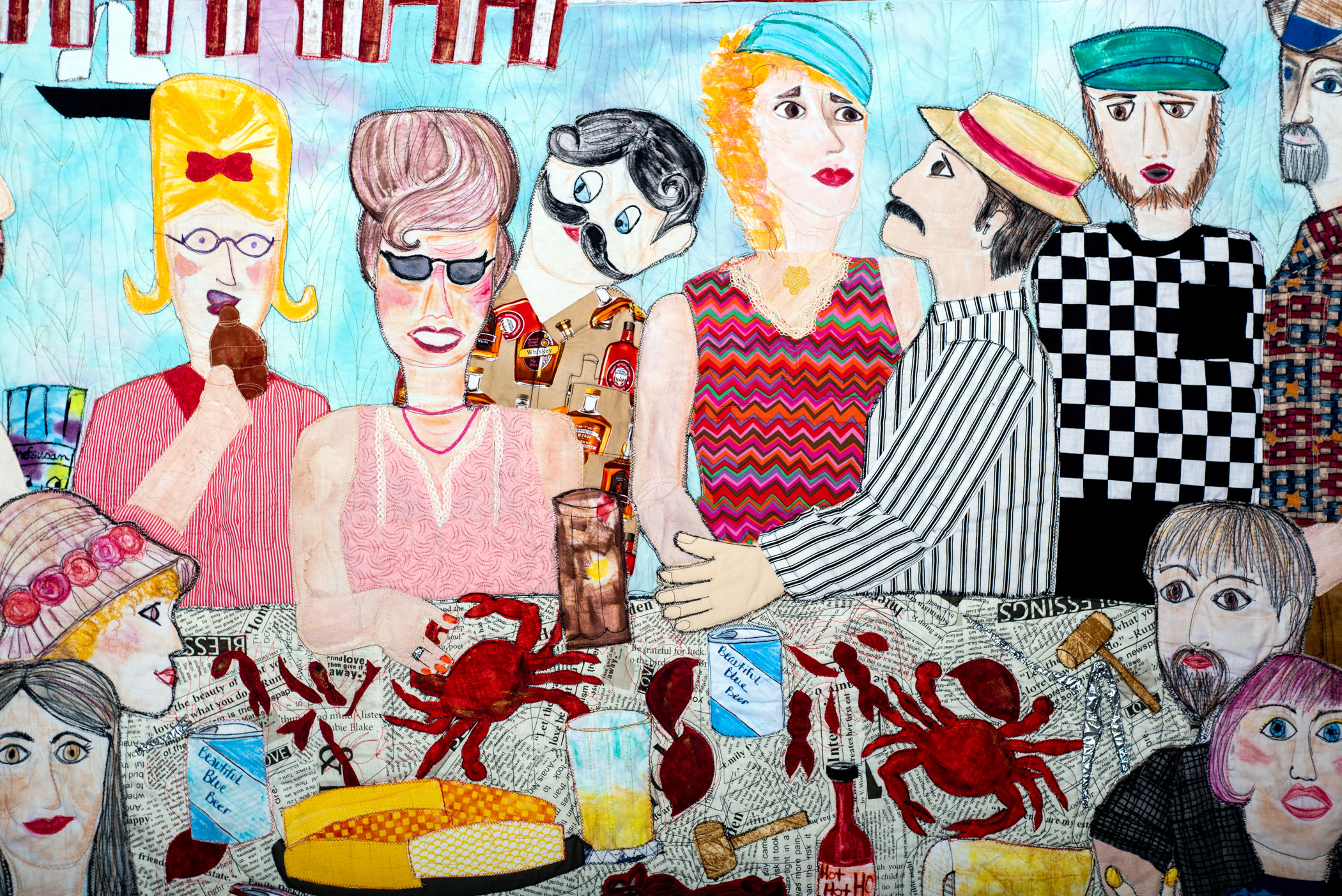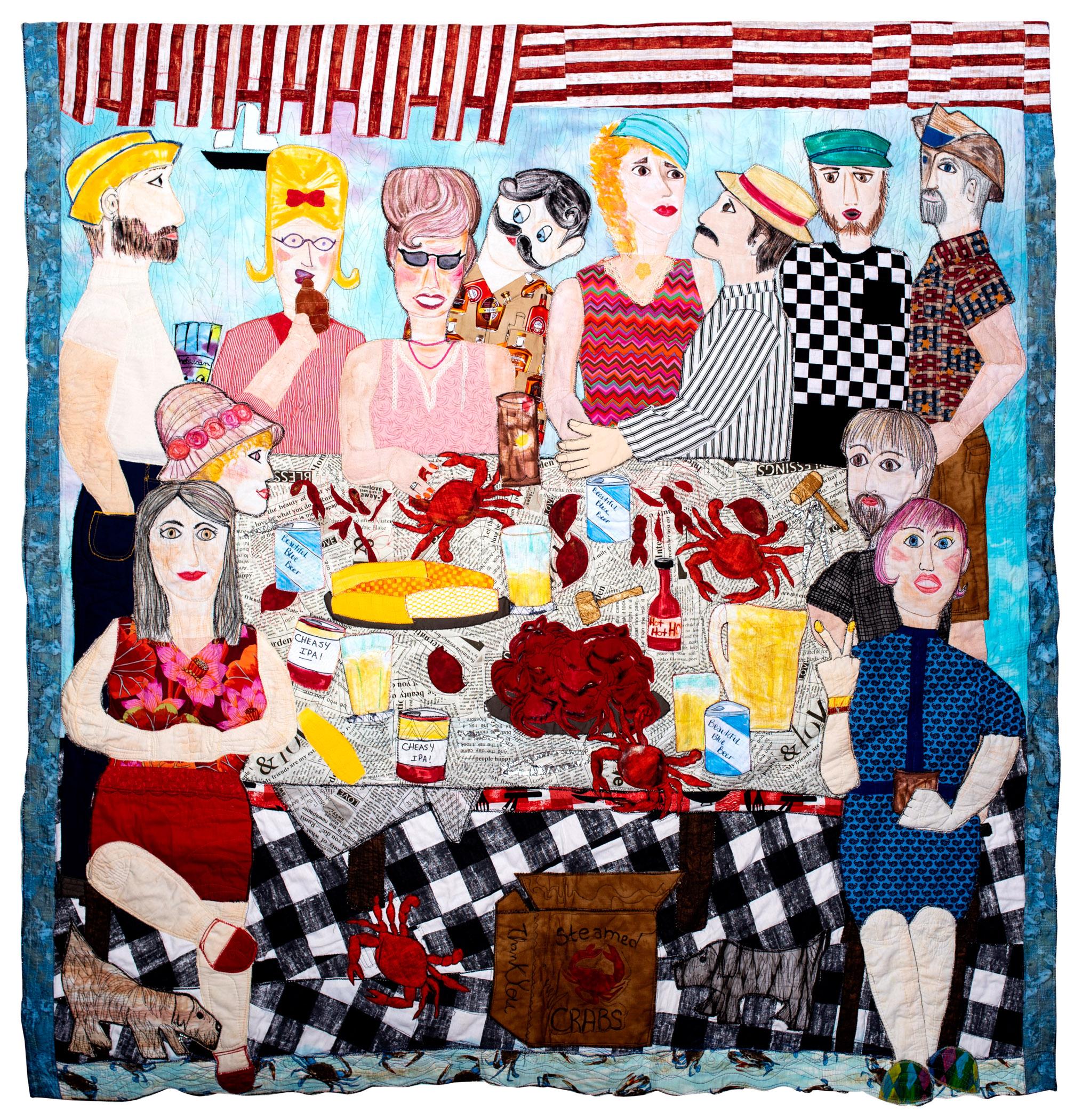 In the words of food writer M.F.K. Fisher, “It seems to me that our three basic needs for food, and security and love are so mixed and mingled and entwined that we cannot straightly think of one without the others.” The tradition of the crab feast is found in the coastal communities of Maryland, Virginia, and Delaware. This piece is my homage to the conviviality of the crab feast and my favorite painting, Luncheon of the Boating Party by Pierre-Auguste Renoir.