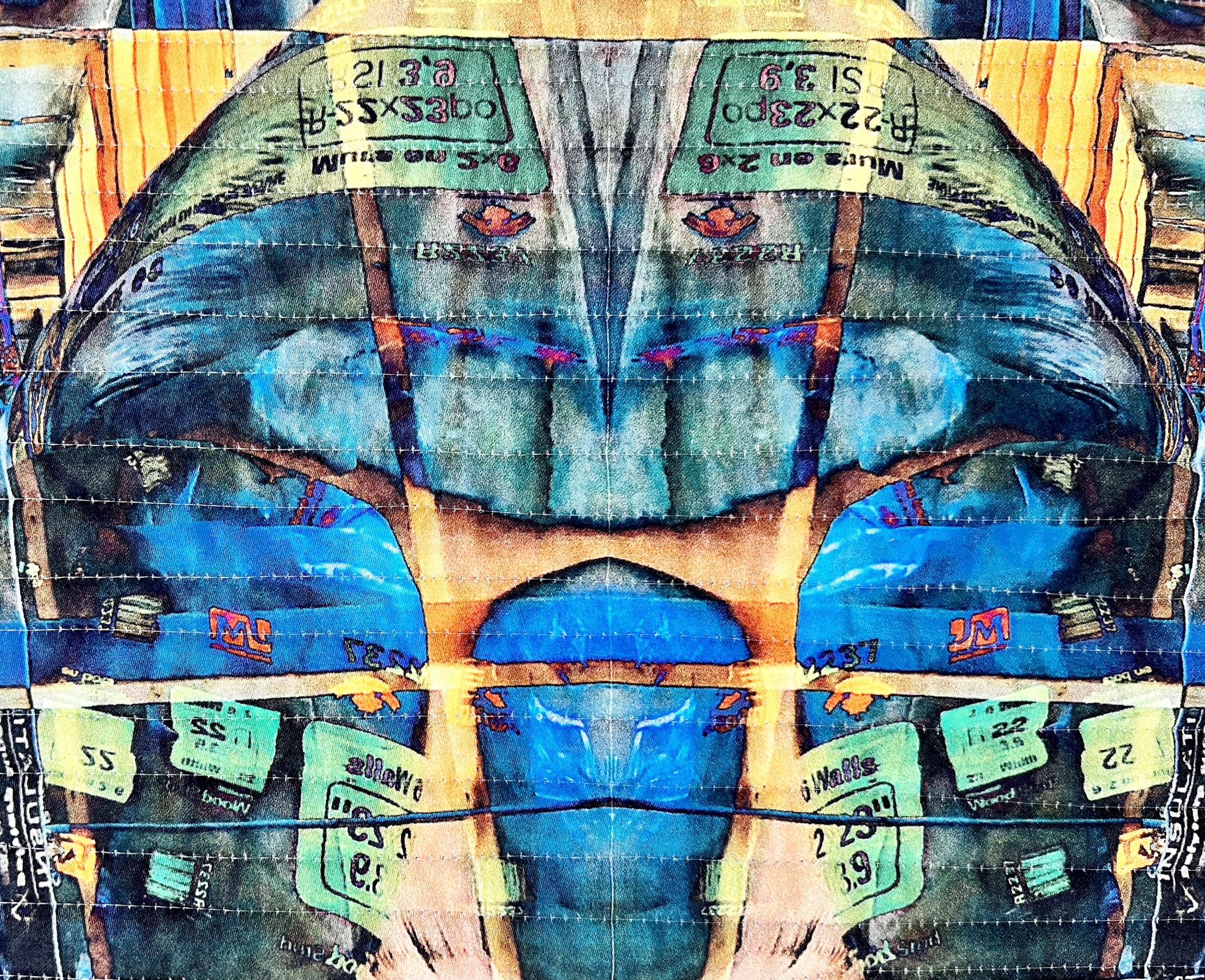 Many photos were taken during the construction of our home. This image is from the basement, where piles of materials were heaped in the framing stage. It was digitally altered to get wild colors and repeating angular forms.