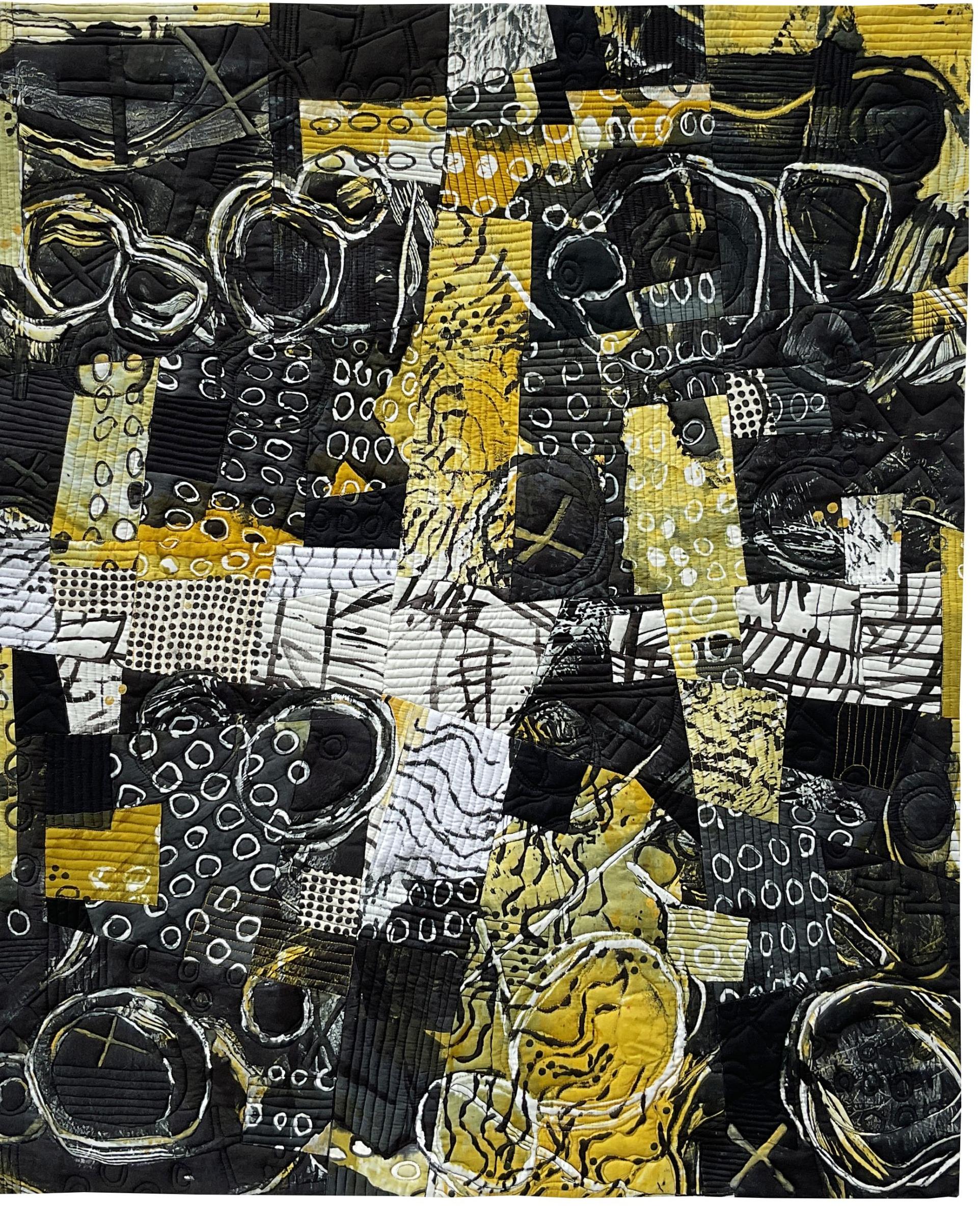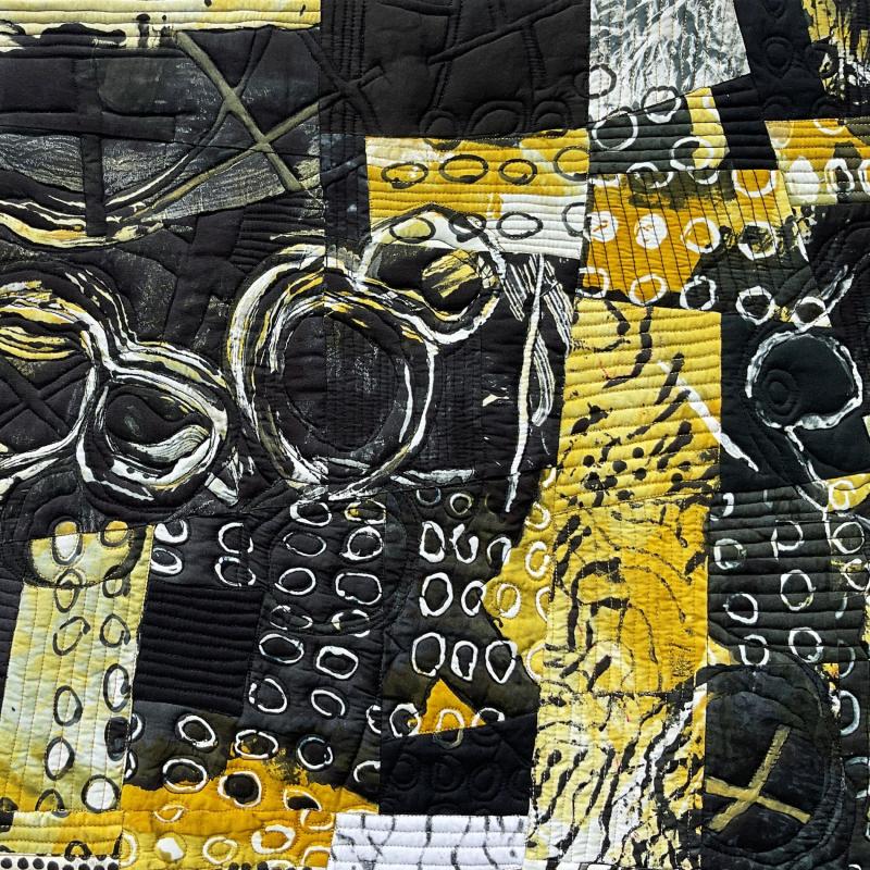 Cotton, commercially printed fabric, dye, fabric paint, acrylic ink