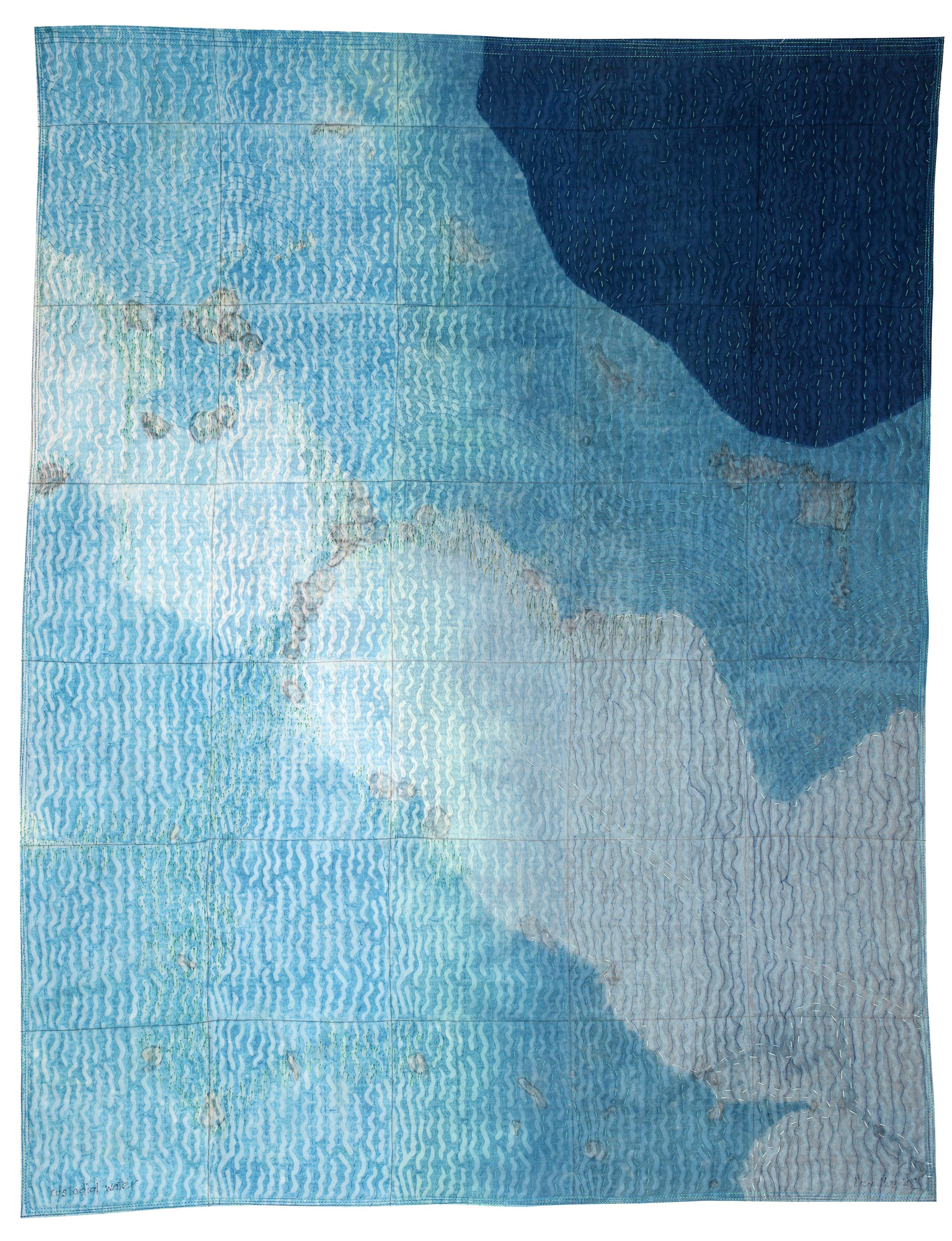 Cotton, silk organza, dye, Pentel pen, pencil.