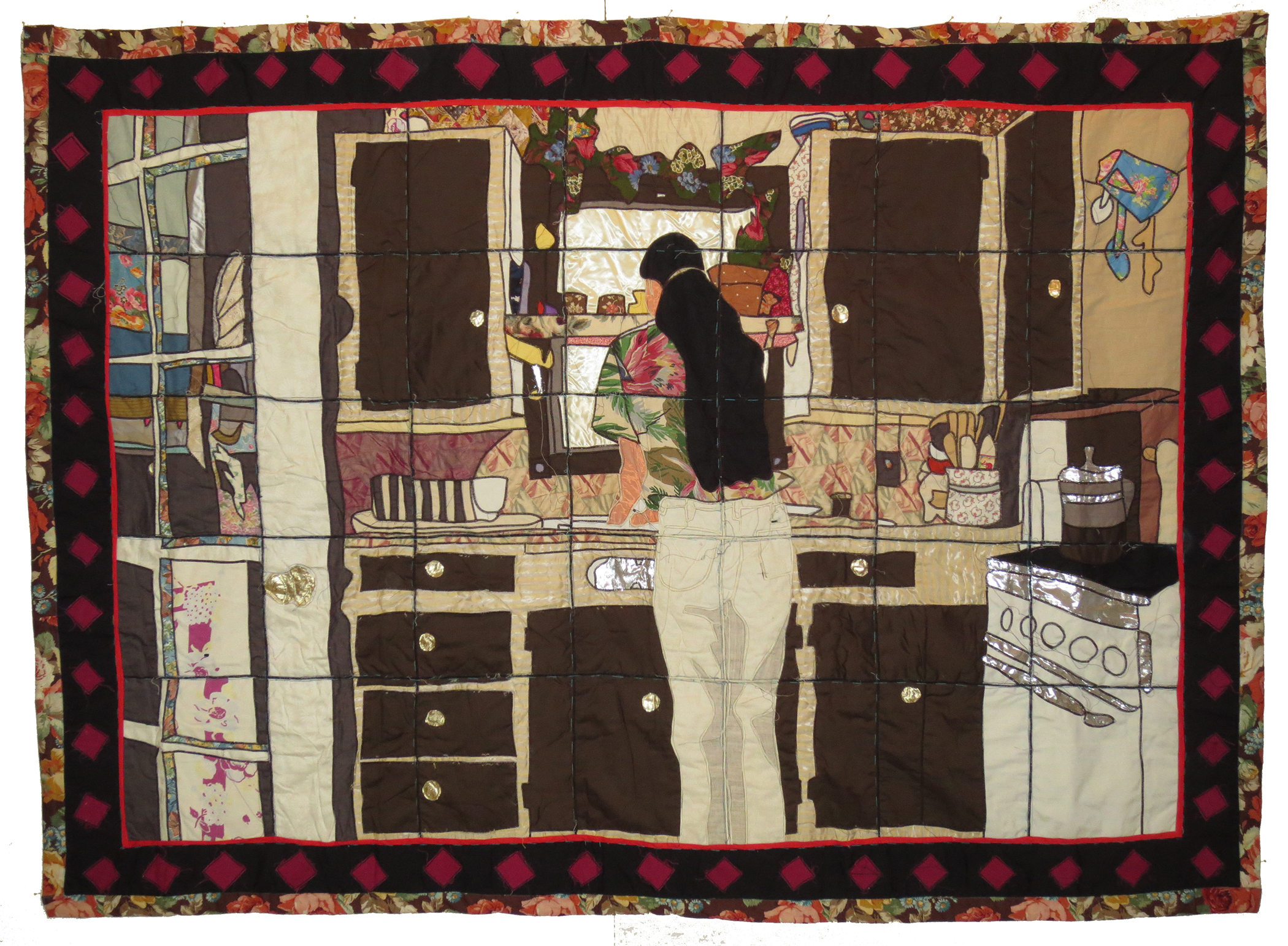 Pattern made from a photo projected onto paper and drawing around the shapes. Machine applique, hand quilted with big stitches.