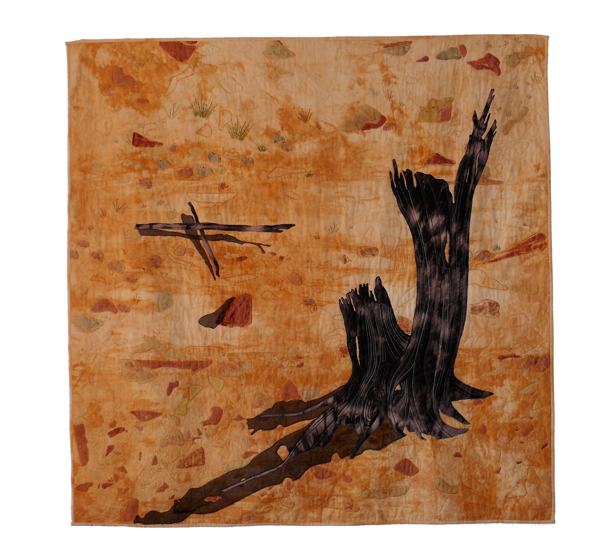The feeling of isolation, solitude and loneliness opens ones eyes to the stark simplicity and wonders of nature. A unique beauty - the dry, bleak, desolate and barren wildness of the arid Australian outback - where sandy plains are dotted with the occasional tree stump, scattered twigs, spinifex and tufts of colourless grasses give way to gibber plains. The work was created in response to a trip through the Sturt National Park in the centre of Australia. It was made for a juried exhibition "Across Australia" and travelled with the exhibition to Europe and the Middle East.